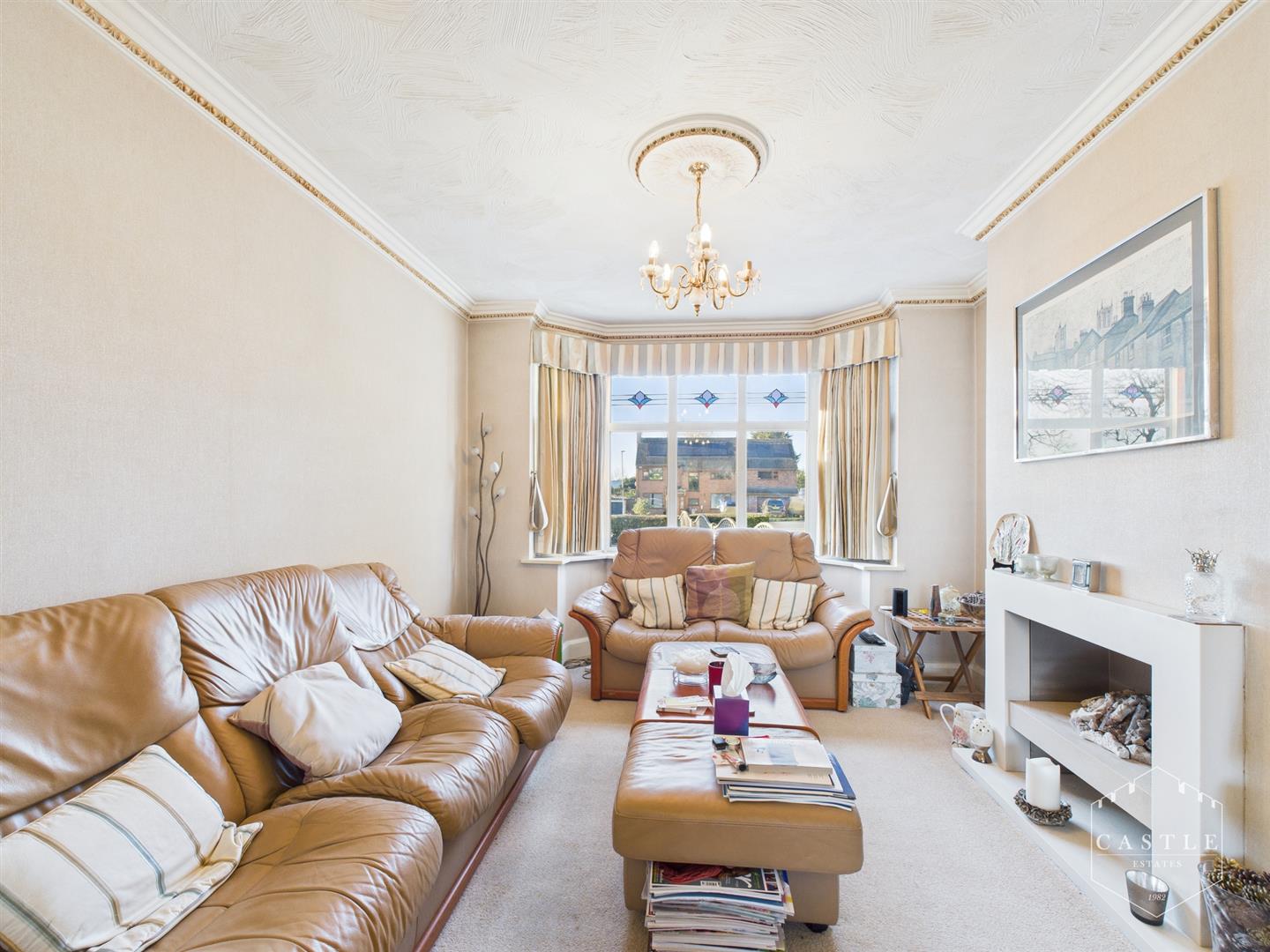 Lounge/Dining Room - 7.34m x 3.33m (24'1 x 10'11 ) - having upvc double glazed bay window with coloured leaded lights, feature fireplace, coved ceiling with ceiling rose and two central heating radiators. Sliding patio doors opening onto private rear garden.