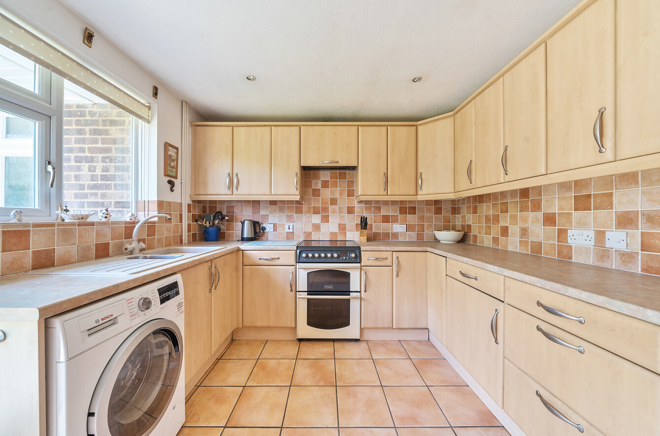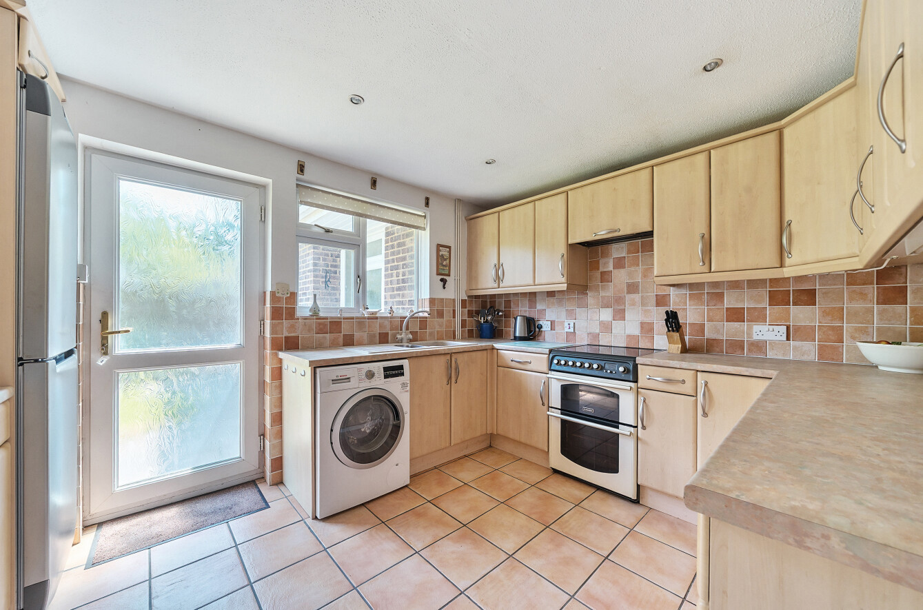 Off of the central corridor of this bungalow, is a great size kitchen with a large range of low and high level storage units and worktop space, space for white goods and also benefits from it's own external door leading to the side garden.