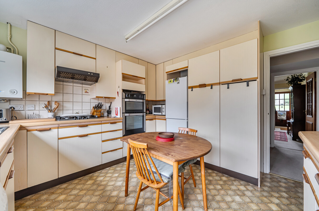 To the rear is a good sized kitchen/diner with a door directly out onto a private patio and garden. The kitchen benefits from a good range of drawer and cupboard storage with integrated oven and space/plumbing for further white goods