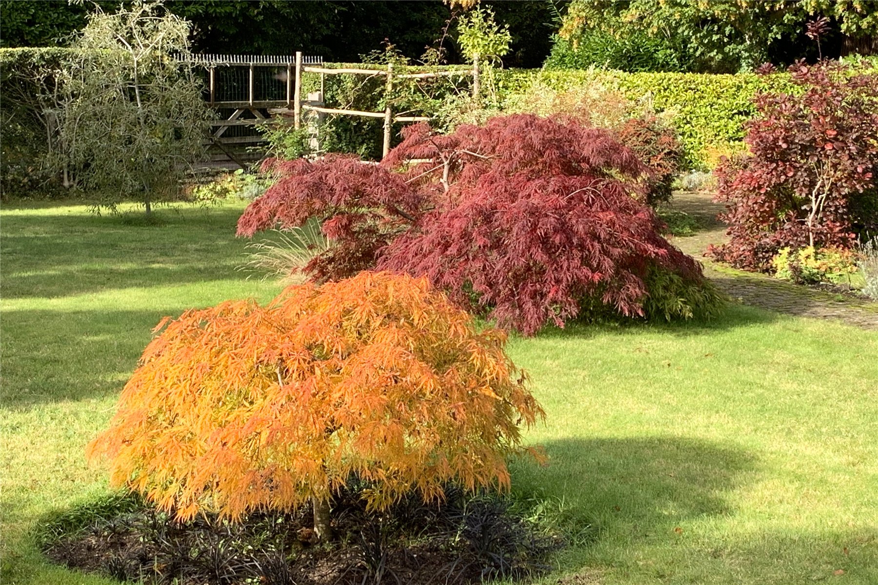 Gated front garden offering a very attractive sunny, level approach to the house, mainly laid to lawn with mature plants and shrubs plus hedging, providing both a natural boundary and high degree of privacy. Running up the side of the plot is a herringbone block paved driveway offering parking for several cars leading up to a spacious garage with up and over electric door and a store to the rear.