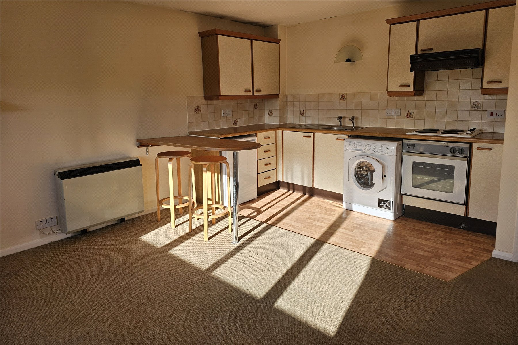 The kitchen is fitted with a range of drawer and cupboard storage. All white goods currently in situ will be sold with the flat