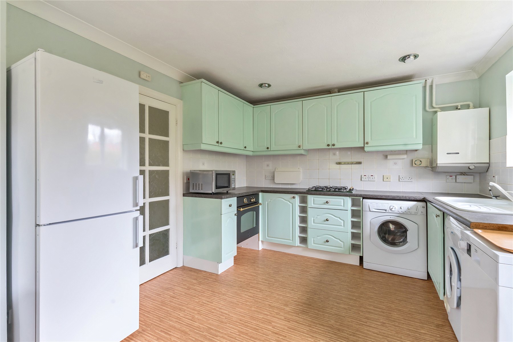 The kitchen is a good sized space with fitted cupboards and integral oven and gas hob with space for further white goods. A breakfast table neatly fits into one corner and access can be made from the kitchen to both the garage and side garden