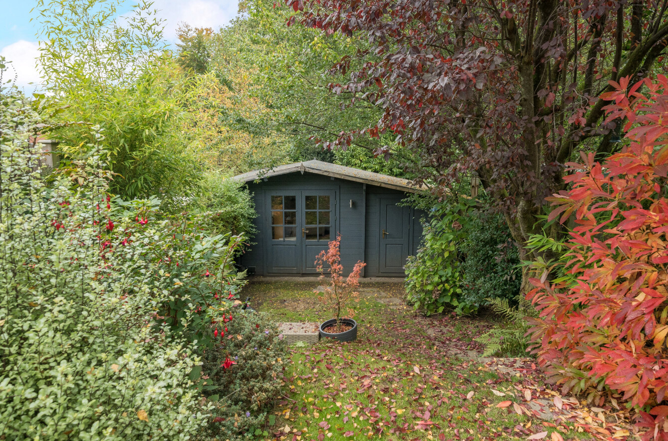 Wonderful woodland views can be enjoyed from this garden, and a gate at the bottom of the garden takes you directly onto a lane into The Golden Valley National Trust woodland; so much countryside right on your doorstep. Adjacent to the house is a generous patio area, ideal for taking in the views but also for summer dining, entertainment and relaxation. Steps lead down to a lawned area of garden flanked by mature trees and shrubs providing year round interest and colour, ever changing with the seasons. At the end of the garden is a large detached outbuilding, half of which is useful shed storage, the other half is a flexible cabin style den/home office/gym.