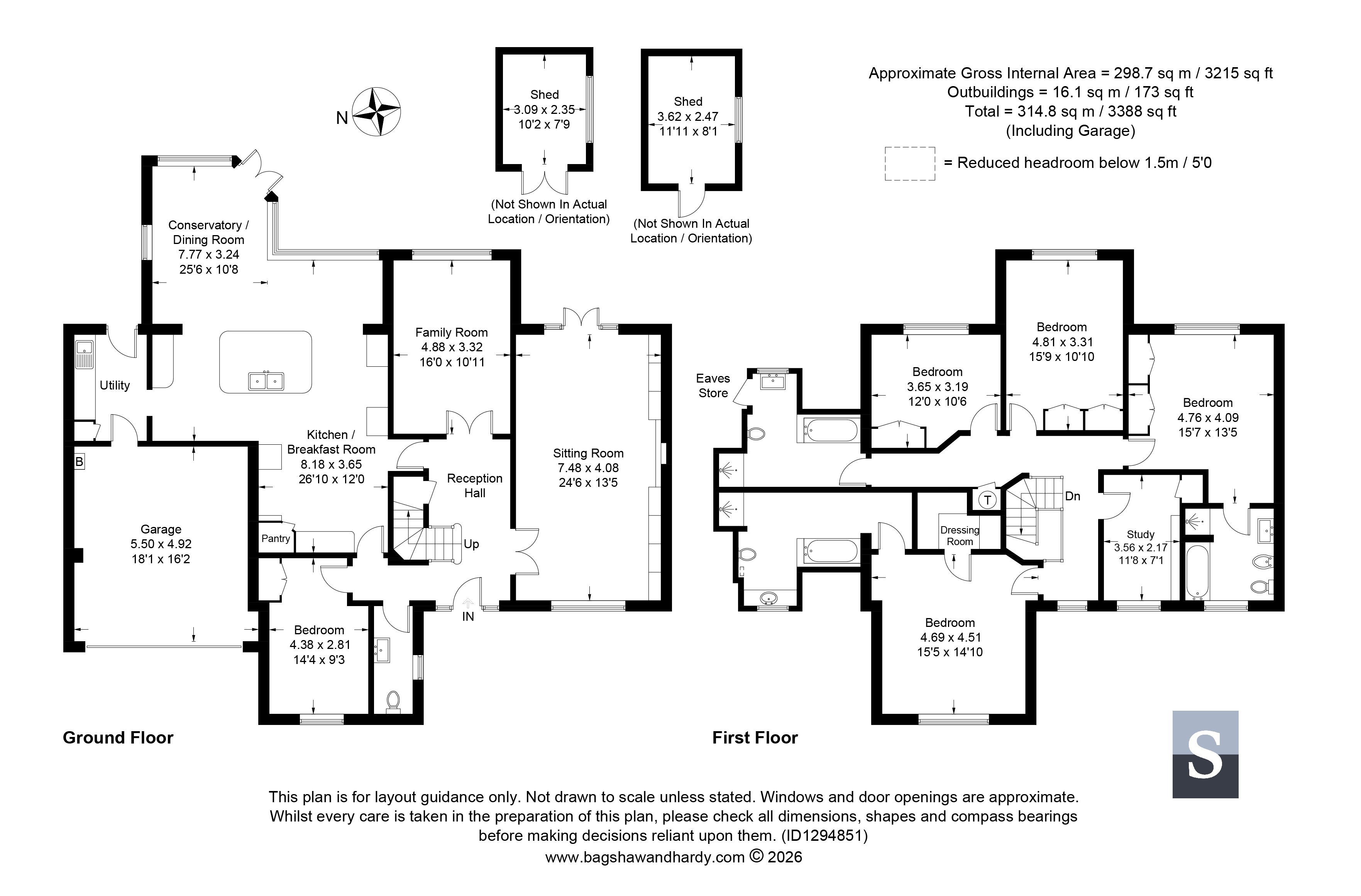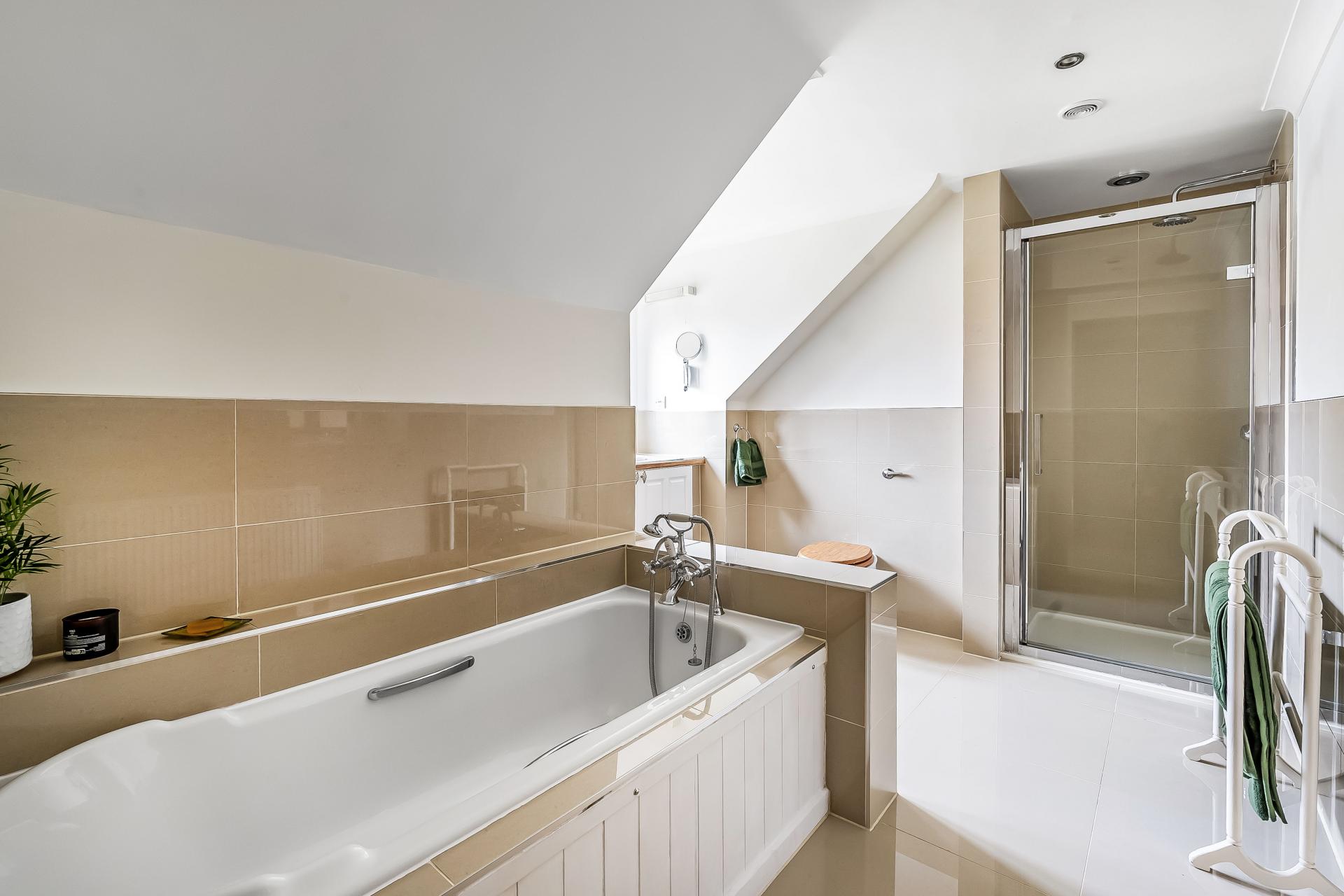 Moving to the first floor a galleried landing offers access to all the bedroom and loft access if needed. The principle suite enjoys a double bedroom, walk in wardrobe and large en suite facility featuring both bath and separate shower. A 2nd guest double bedroom has built in wardrobes and en suite; with bath, shower, bidet, toilet and sink. There are three further generous bedrooms with built in wardrobes (one of which is currently used as a study) which share a spacious family bathroom, which also benefits from a separate shower and access to eaves storage.