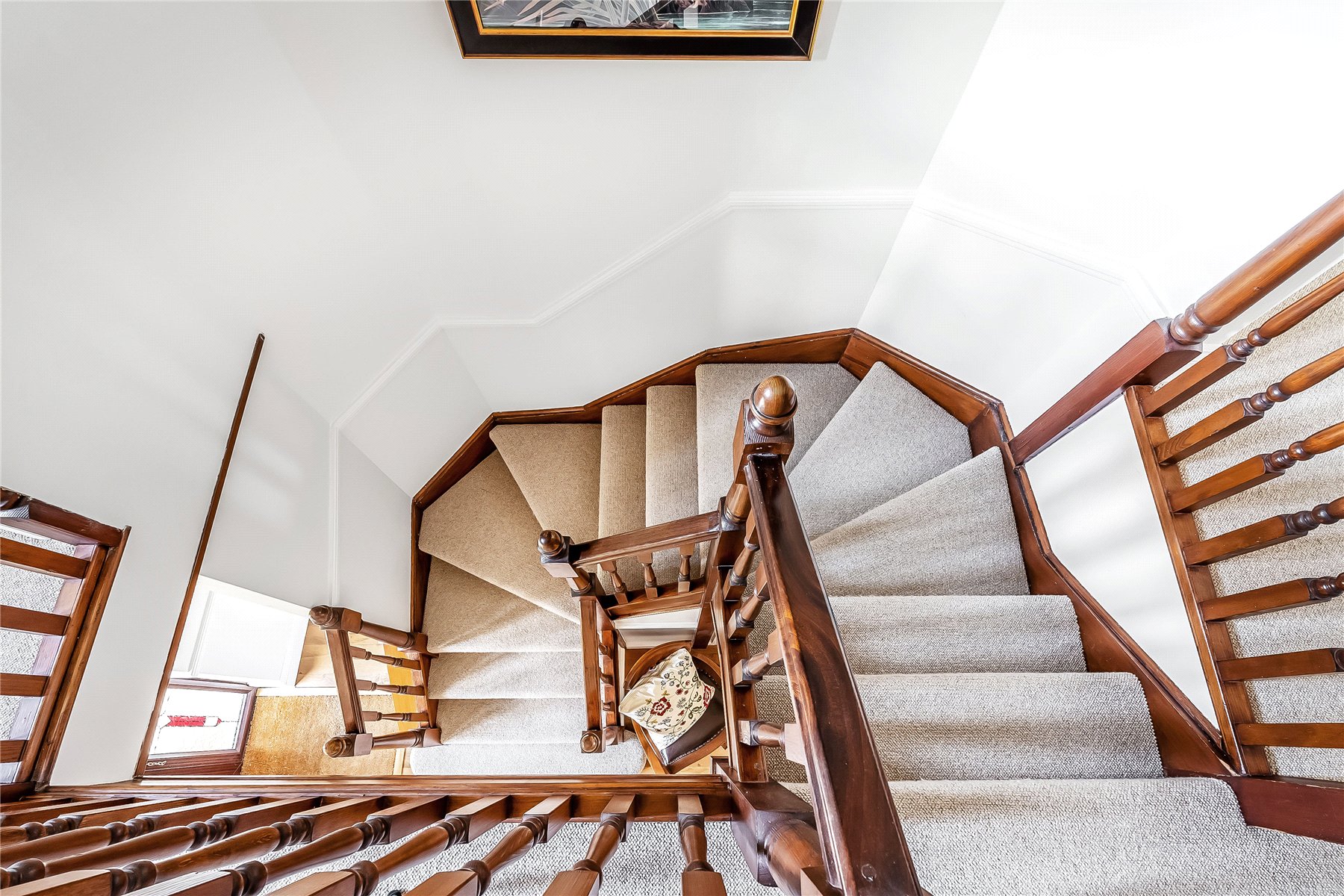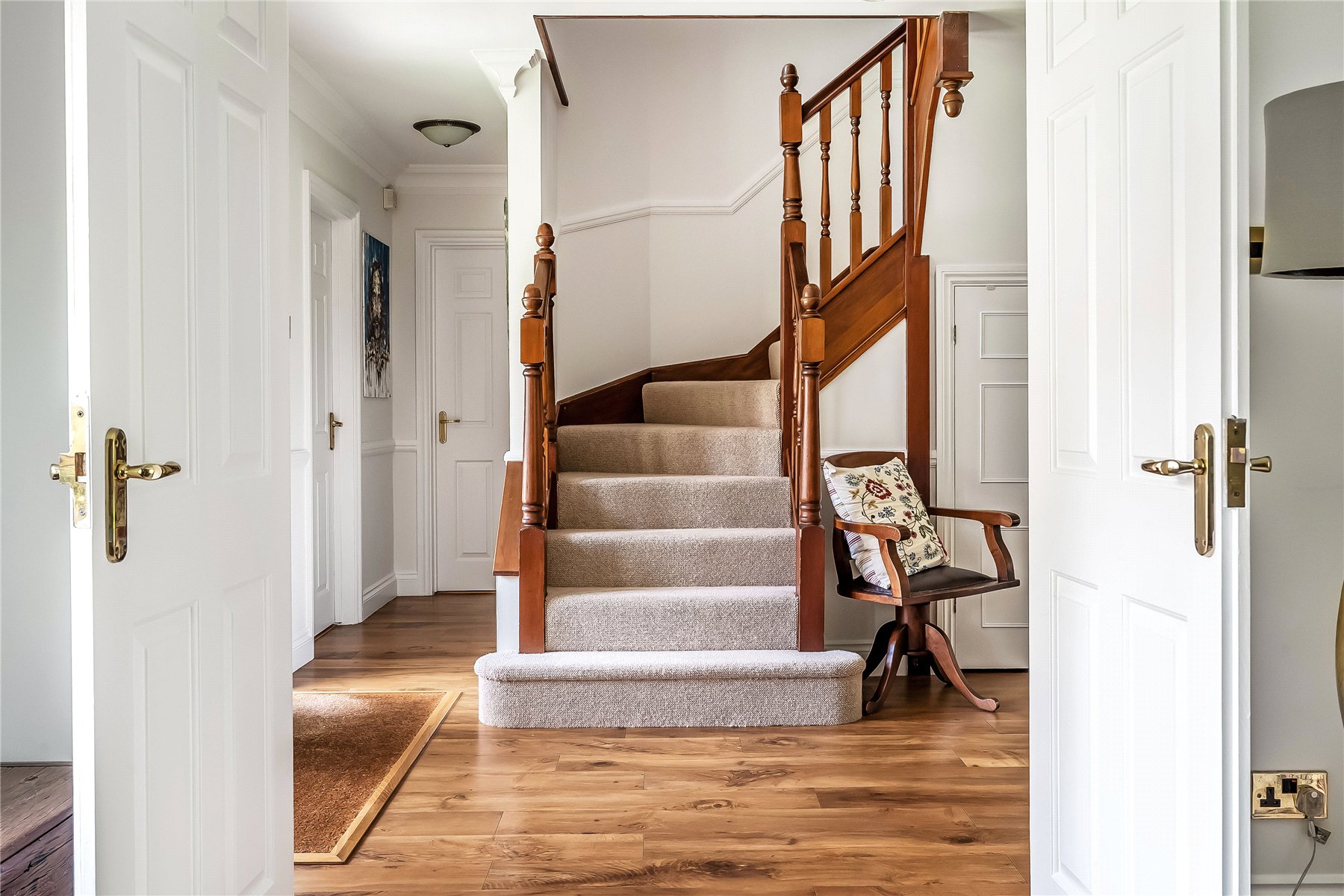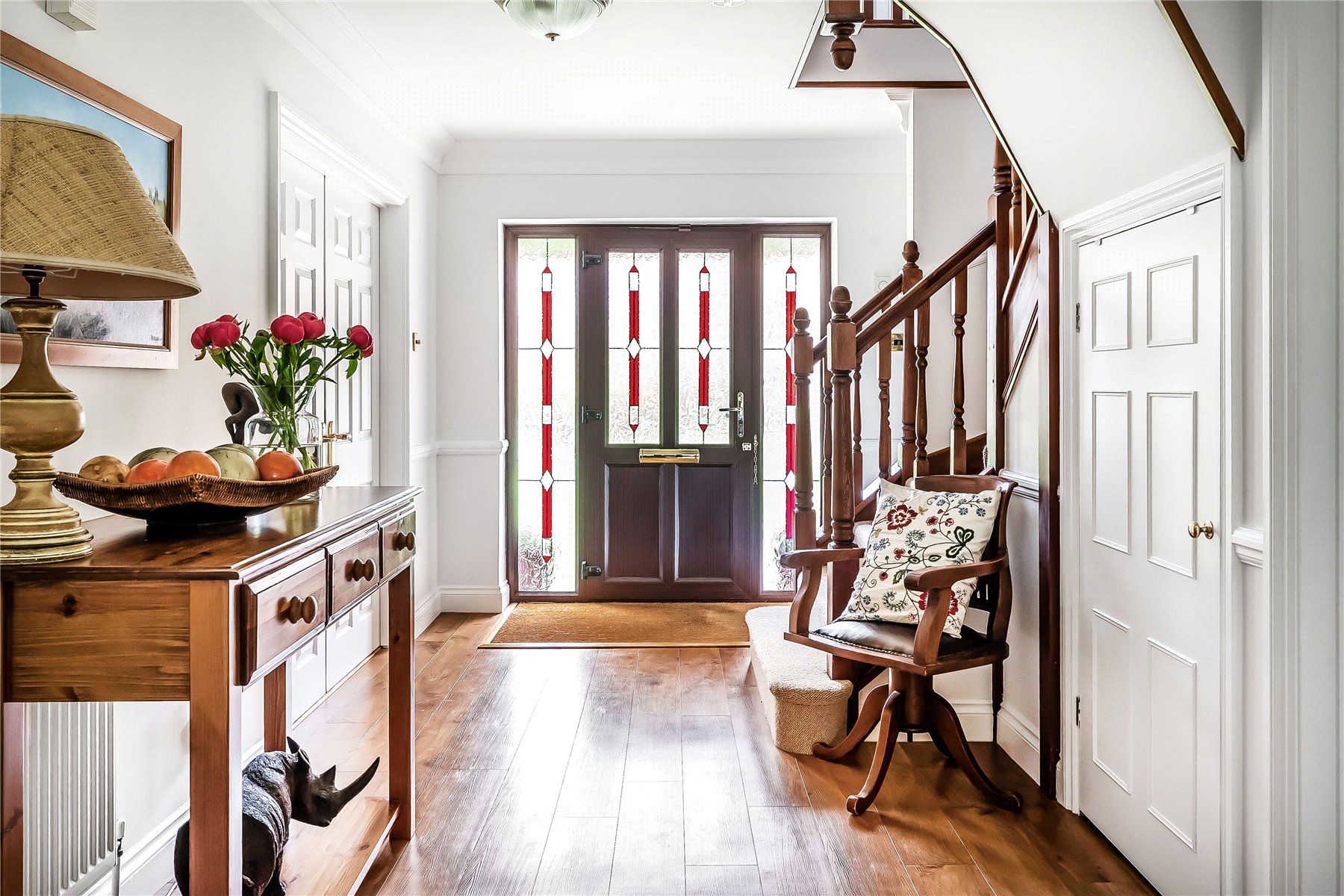 Approached via a mature front garden and substantial driveway, offering parking for several vehicles in addition to the double garage (electric doors). A paved pathway leads around to a deep covered entrance porch to an attractive glazed front door flanked by stained glass panels either side. This naturally lets light into the reception hall which is generous and a great space in which to welcome family and friends alike.