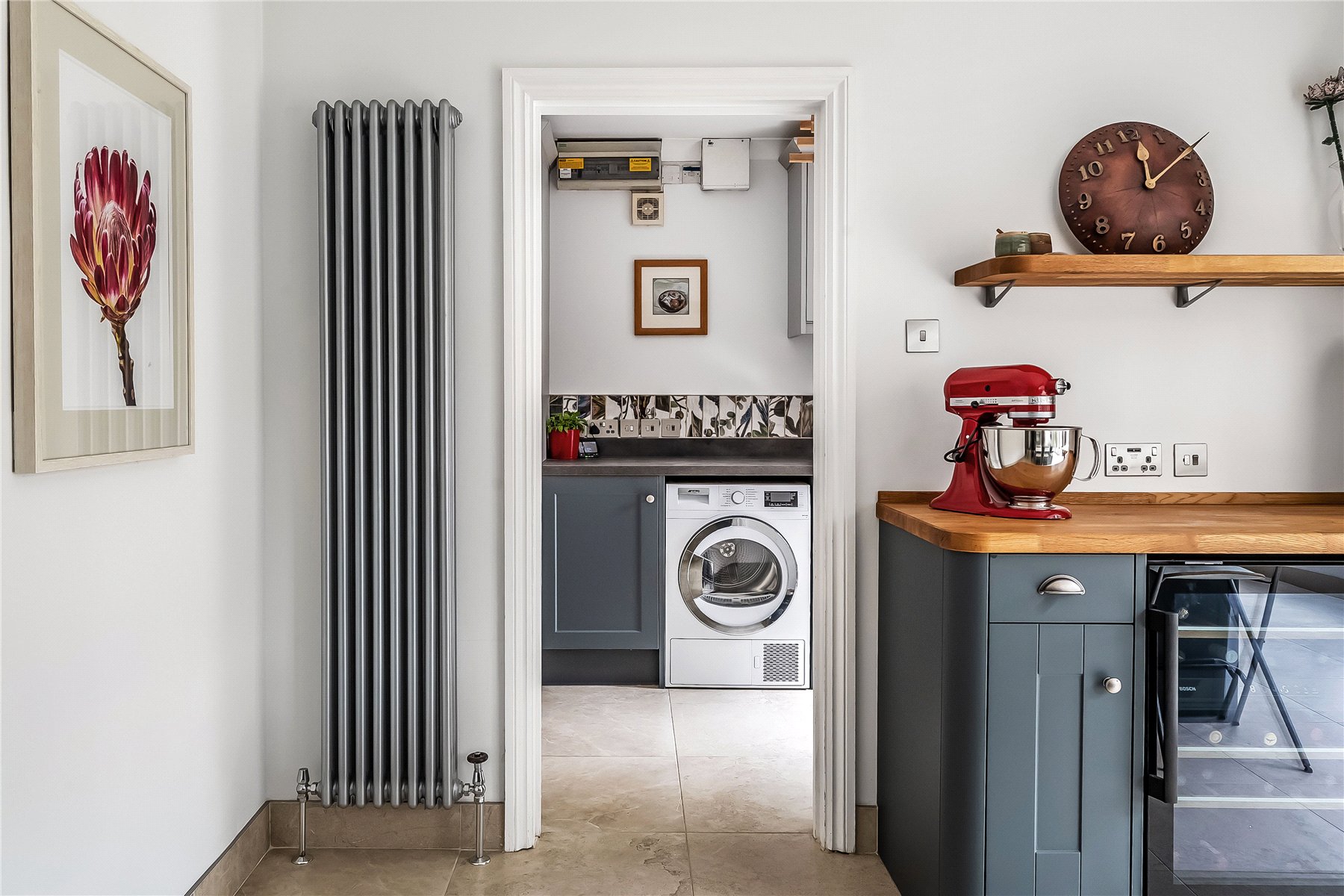 Off the kitchen is a separate utility room with space for further white goods. It benefits from a door into a courtyard area of the garden with shed and washing line, a tucked away working area of the garden, and has an internal door into the garage.
