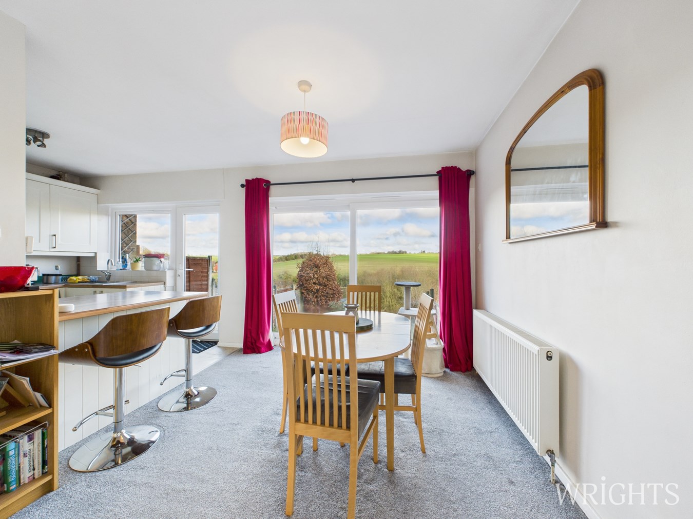Designed with space and flexibility in mind, this impressive home is ideal for both everyday family life and hosting guests. Complimented with the village lifestyle yet convenient for modern living. A bright entrance hall with cloakroom/WC sets the tone and leads through to a striking L-shaped reception room. This space is filled with natural light from floor to ceiling windows and features double doors that connect seamlessly with the kitchen and dining area. The contemporary Wren kitchen/diner is well equipped with an extensive selection of wall and base cabinetry, wood work surfaces, glass splashbacks, and a blend of integrated and freestanding appliances. Large sliding doors open onto the patio, providing easy access to the garden and making the most of the open countryside outlook.