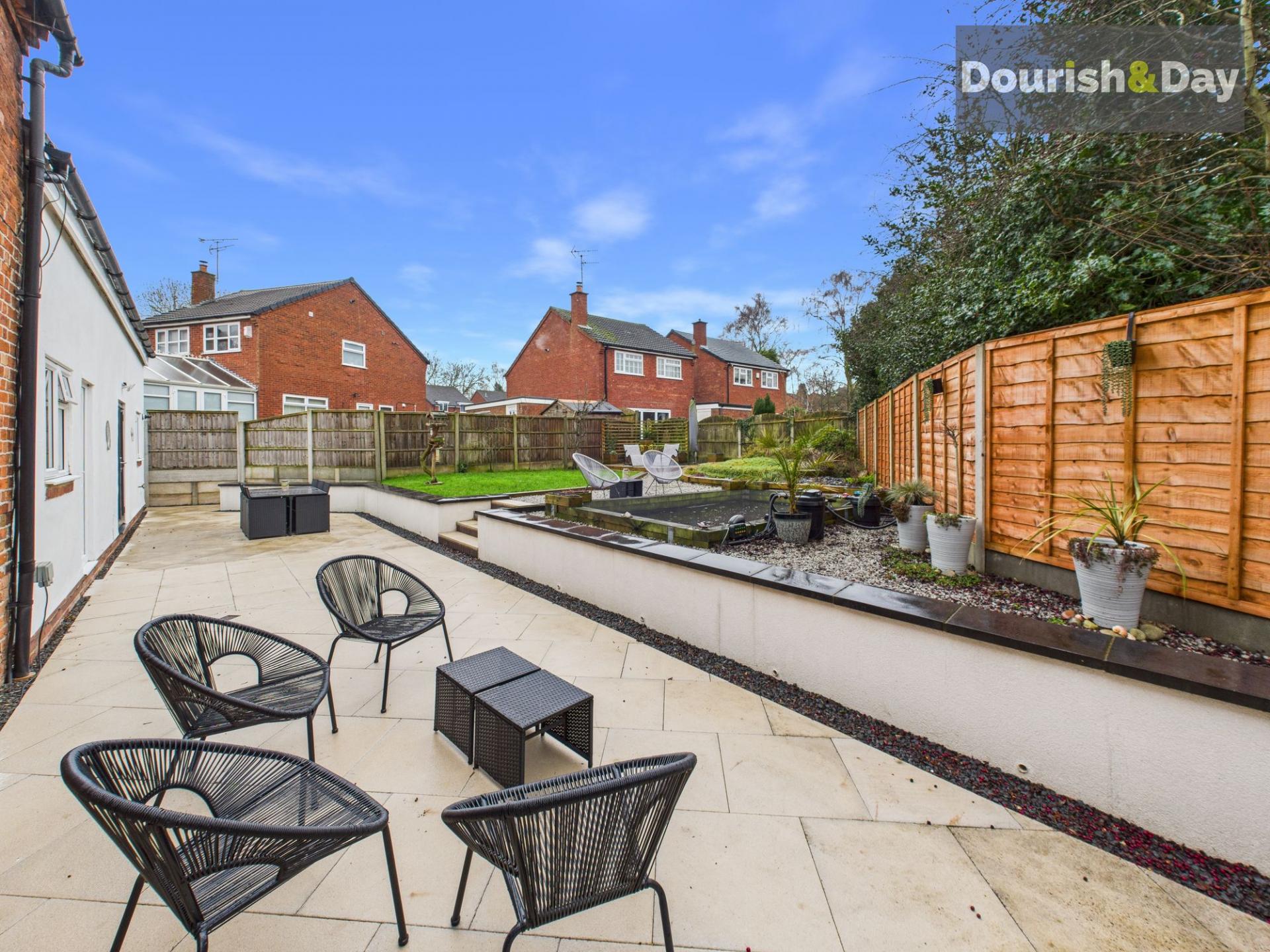 - Exceptional Garden With Koi Pond, Decking And Paved Terraces