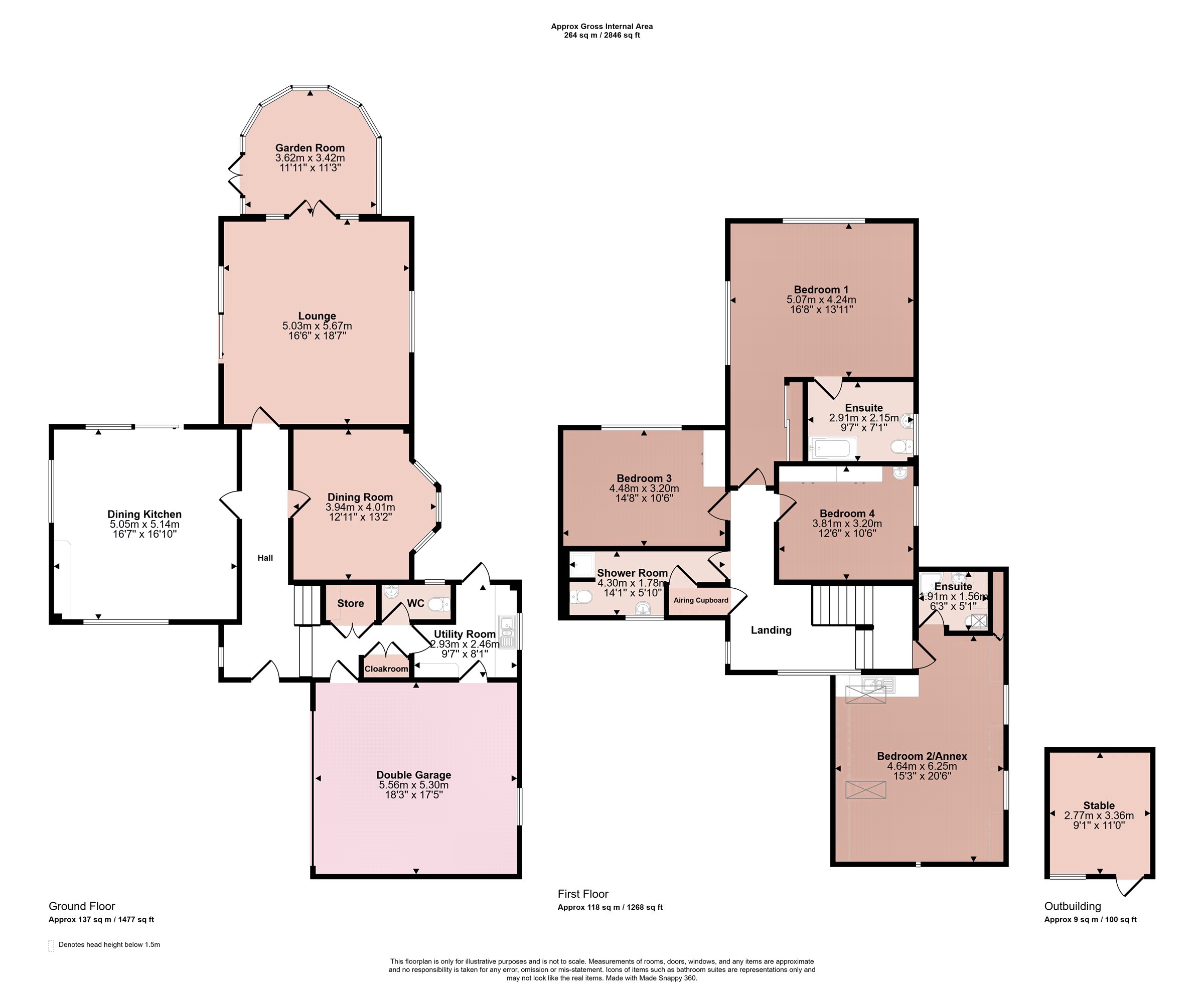 Upstairs, four well-proportioned double bedrooms provide calm and comfort. The principal suite enjoys dual-aspect views towards the village church alongside a dressing area and private en-suite, complemented by a separate guest suite ideal for visitors or multi-generational living. Two further bedrooms are served by a family shower room.