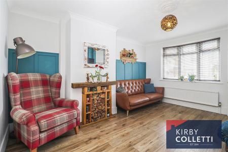 Lounge - 4.55m x 3.43m (14'11 x 11'3) - Front aspect uPVC double glazed window. Painted feature paneled walls. Laminated wood flooring. Radiator. Coved ceiling. Understairs storage cupboard. Door to: