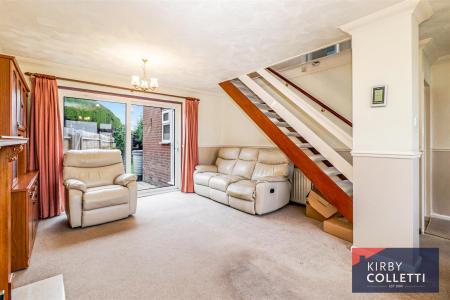 Lounge - 5.61m x 4.11m max (18'5 x 13'6 max) - Front aspect uPVC window and rear aspect sliding patio door to garden. Feature fireplace. Coved ceiling. Dado rail. Two radiators. Stairs up to first floor. Door to Dining room.