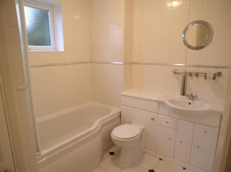 Bathroom - 2.59m x 2.03m (8'6 x 6'8 ) - Side aspect uPVC double glazed window. White suite comprising panel enclosed bath mixer tap and wall mounted shower screen. Low level W.C. Wash hand basin. Airing cupboard. Walls fully tiled. Tiled floor. Heated towel rail.