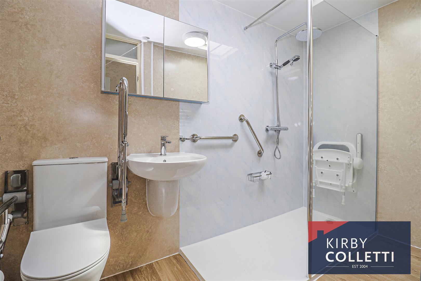 Shower Room - 3.00m x 1.47m (9'10 x 4'10) - White suite comprising large walk in shower. Wall hung wash hand basin. Low level W.C. Heated towel rail. Sky light and window looking into entrance hall.