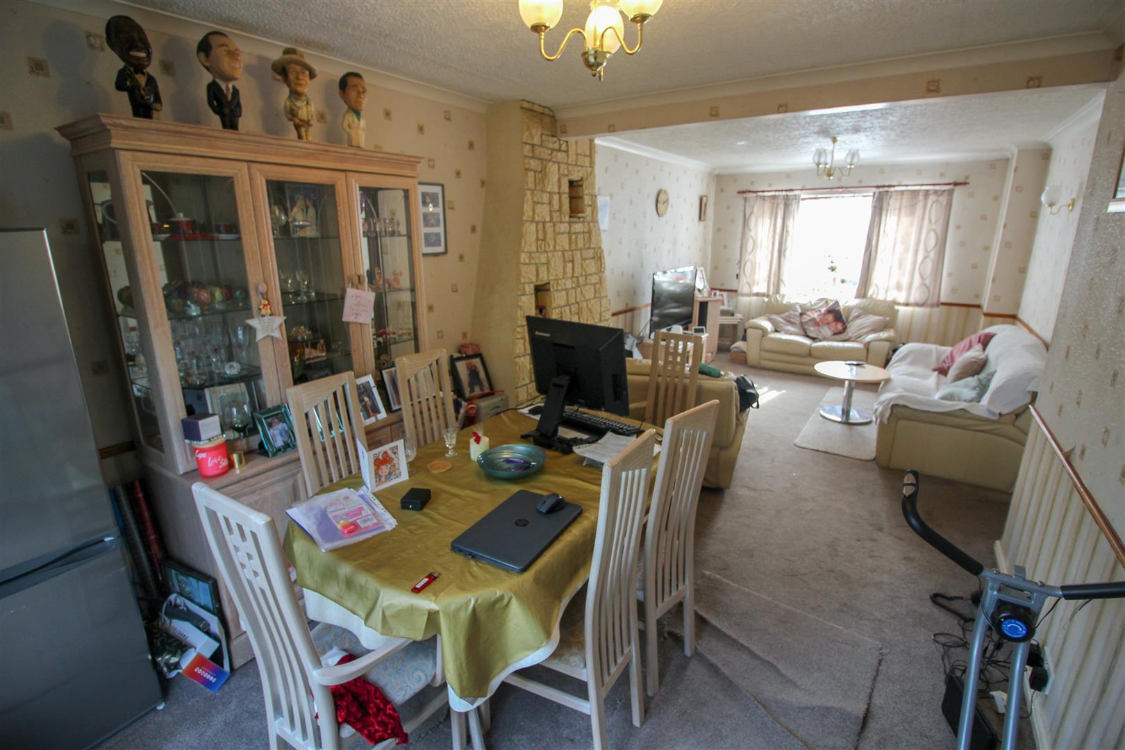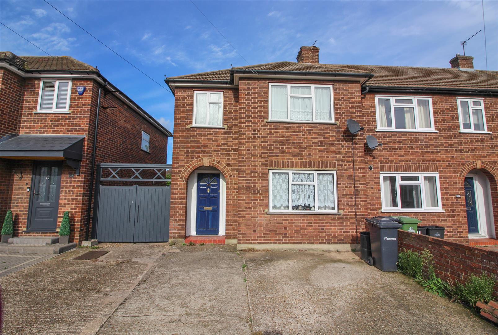 A spacious three bedroom end of terrace home, benefitting from a garage and driveway parking. The house is in need of modernisation throughout, but offers a fantastic opportunity to be made into a lovely family home. Downstairs comprises an open plan lounge/dining room with french doors opening up onto the rear garden with side access, along with a kitchen and entrance hallway. Upstairs offers three bedrooms, a large family bathroom, storage and additional loft space. As previously mentioned there is driveway parking for two cars, with a single garage to the rear of the property.