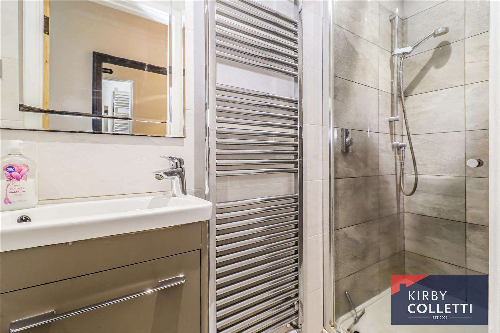Re-Fitted Shower Room/W.C - 3.40m x 0.76m (11'2 x 2'6) - Front aspect uPVC double glazed window. White suite comprising fully tiled shower cubicle. Low level W.C with concealed cistern. Wash hand basin. Fully tiled walls. Tiled floor. Heated towel rail. Extractor fan. Recessed ceiling spotlights.