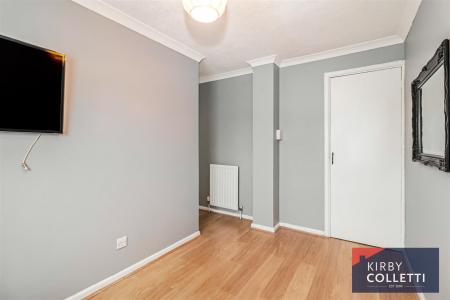 Bedroom Three - 3.45m x 3.38m (11'4 x 11'1) - Rear aspect uPVC double glazed window. Radiator. Built in wardrobe. Laminate flooring. Coved ceiling.