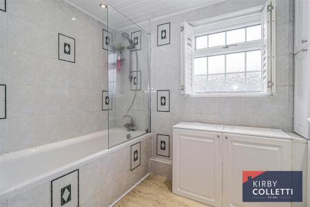 Family Bathroom - 2.72m x 2.57m (8'11 x 8'5) - Side aspect uPVC double glazed window. White suite comprising panelled bath mixer tap and shower attachment over. Wall mounted shower screen. Wash hand basin. Low level W.C. Fully tiled walls.
