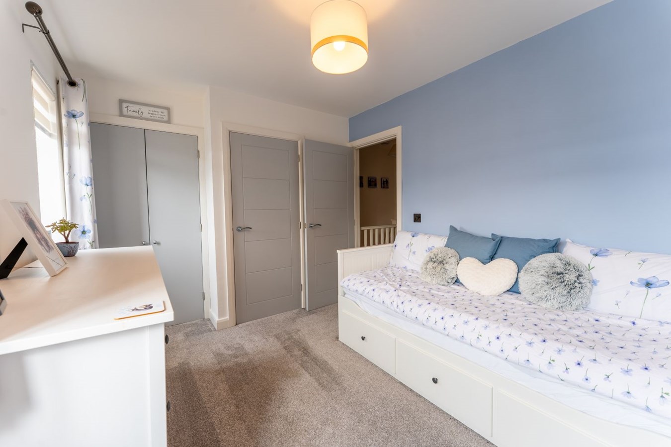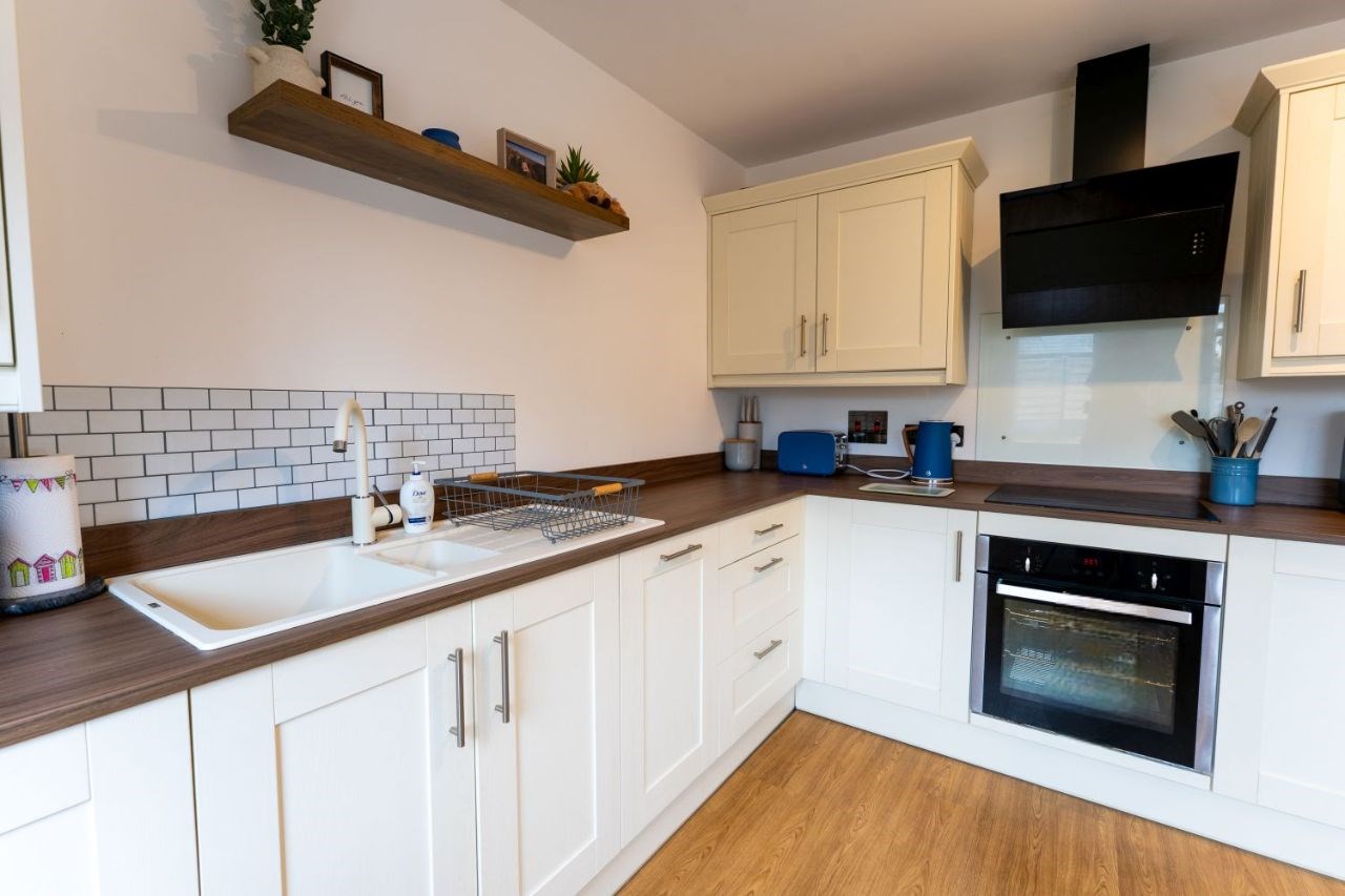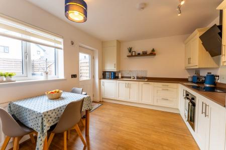 This attractive mid-terrace home is an ideal first-time purchase or investment opportunity, situated on a popular modern development. The ground floor comprises an entrance hall, a light and comfortable living room, a handy cloakroom and a modern kitchen/diner fitted with a range of units, an integrated oven and hob, fridge/freezer, dishwasher and washing machine. Upstairs, there are two double bedrooms, both benefiting from built-in storage and en-suites, one with a shower room and the other with a bathroom. The attic space is also boarded with a loft ladder which is useful for storage. Outside, the property has parking for two vehicles at the front. The rear garden is low maintenance, featuring a paved patio, lawn, slate chippings, a garden shed and useful shared side access. Additional benefits include gas central heating, double glazing and the remainder of the 10-year LABC warranty. Ready to move straight into, viewing is highly recommended.