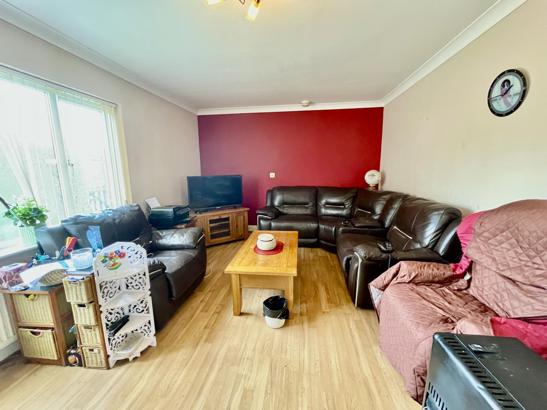 LOUNGE DINER 11' 4" x 20' 8" (3.46m x 6.32m) UPVC double glazed window to the front elevation, UPVC double glazed French doors to the side elevation leading into Conservatory, skimmed and coved ceiling, centre light point, smoke alarm, laminate flooring, double radiator, TV point, telephone point.