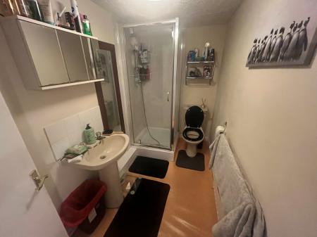 SHOWER ROOM 9' 8" x 4' 8" (2.97m x 1.44m) Shower cabinet with fitted shower, low level WC, pedestal wash hand basin, automatic extractor fan, ceiling light, radiator.