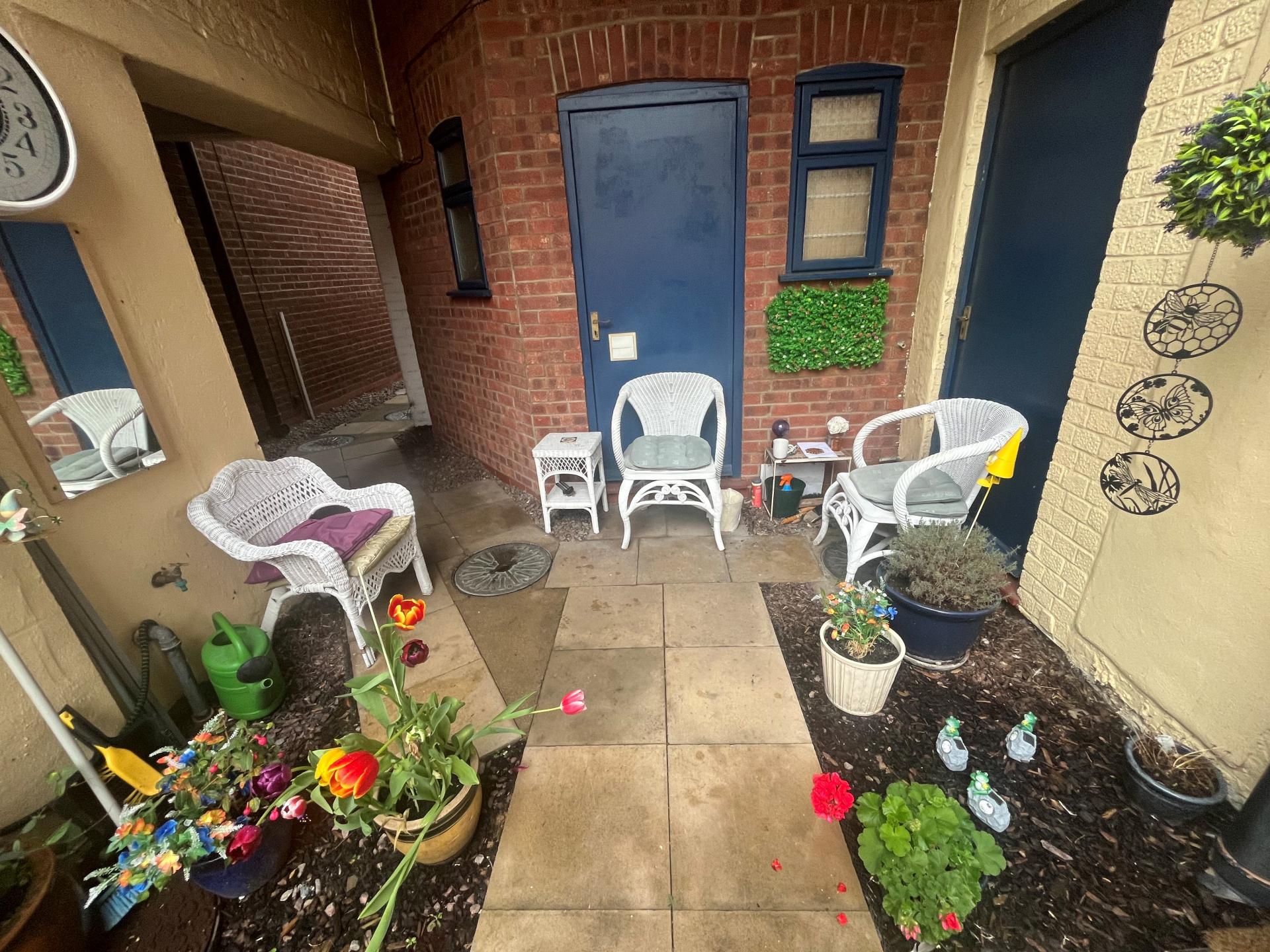 EXTERIOR The property is approached through a passageway and communal entrance door. There is a communal seating area and concreted shared yard to the rear.