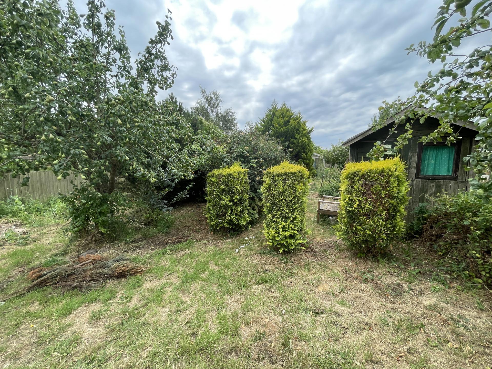 REAR GARDEN Mainly laid to lawn with a wide range of mature shrubs and trees (including fruit trees), wooden garden shed, patio area, vegetable patch, fenced boundaries, field views to the rear.