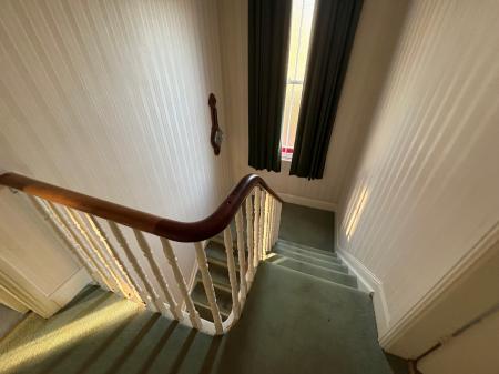 From the Reception Hall the carpeted return staircase leads via a Half Landing with part coloured leaded light obscure glazed sash window to: