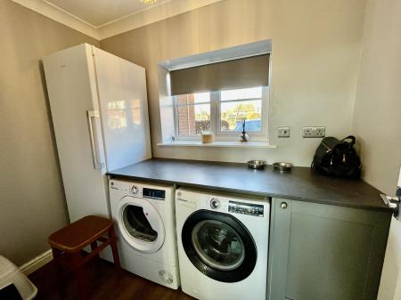 UTILITY ROOM: 5' 1" x 8' 0" (1.56m x 2.45m) UPVC double glazed window to the front elevation, skimmed and coved ceiling, centre light point, extractor fan, smoke alarm, access to loft space, fitted base units and worktops, plumbing and space for washing machine, space for tumble dryer and fridge freezer, radiator.