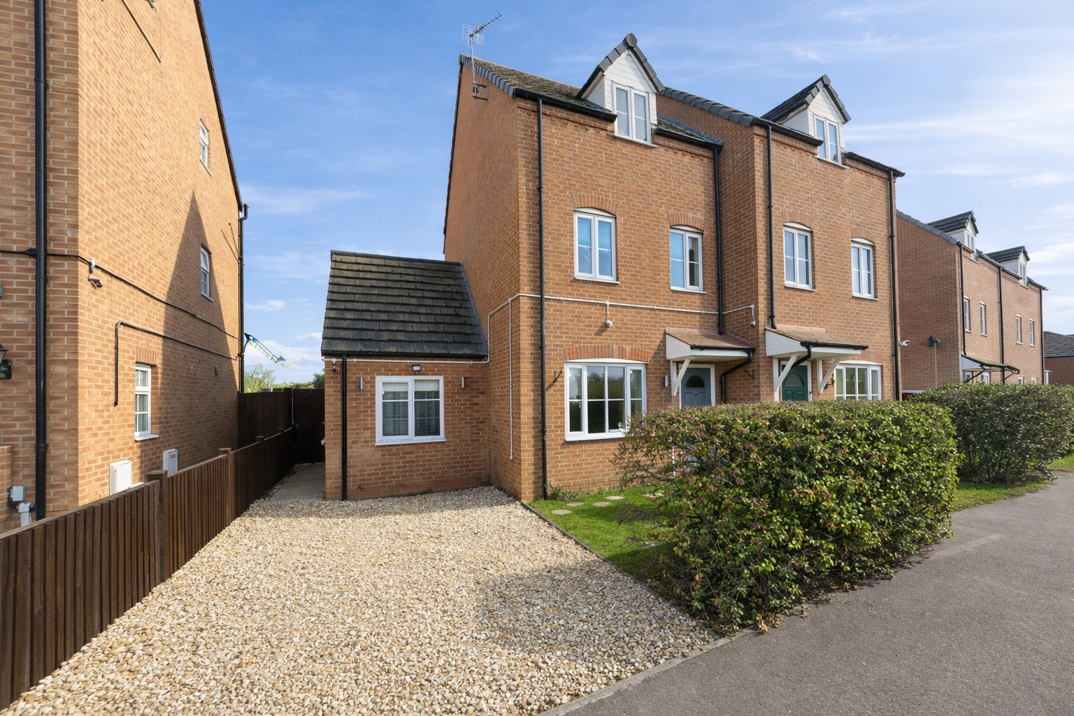 EXTERIOR There is a driveway to the side elevation providing off-road parking. Lawned area with hedged boundaries and paved pathways leading to: