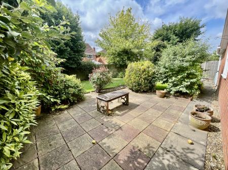 REAR GARDEN Extensive patio, mainly laid to lawn with a wide range of mature shrubs and trees with fenced boundaries to both sides and to the rear elevation. Garden shed, external lighting.