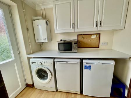 UTILITY ROOM 4' 7" x 7' 1" (1.42m x 2.18m) Obscured UPVC double glazed door to the side elevation, coved and textured ceiling, centre light point, worktop, eye level units, plumbing and space for washing machine, space for fridge freezer, wall mounted Worcester boiler, central heating controls, laminate flooring.