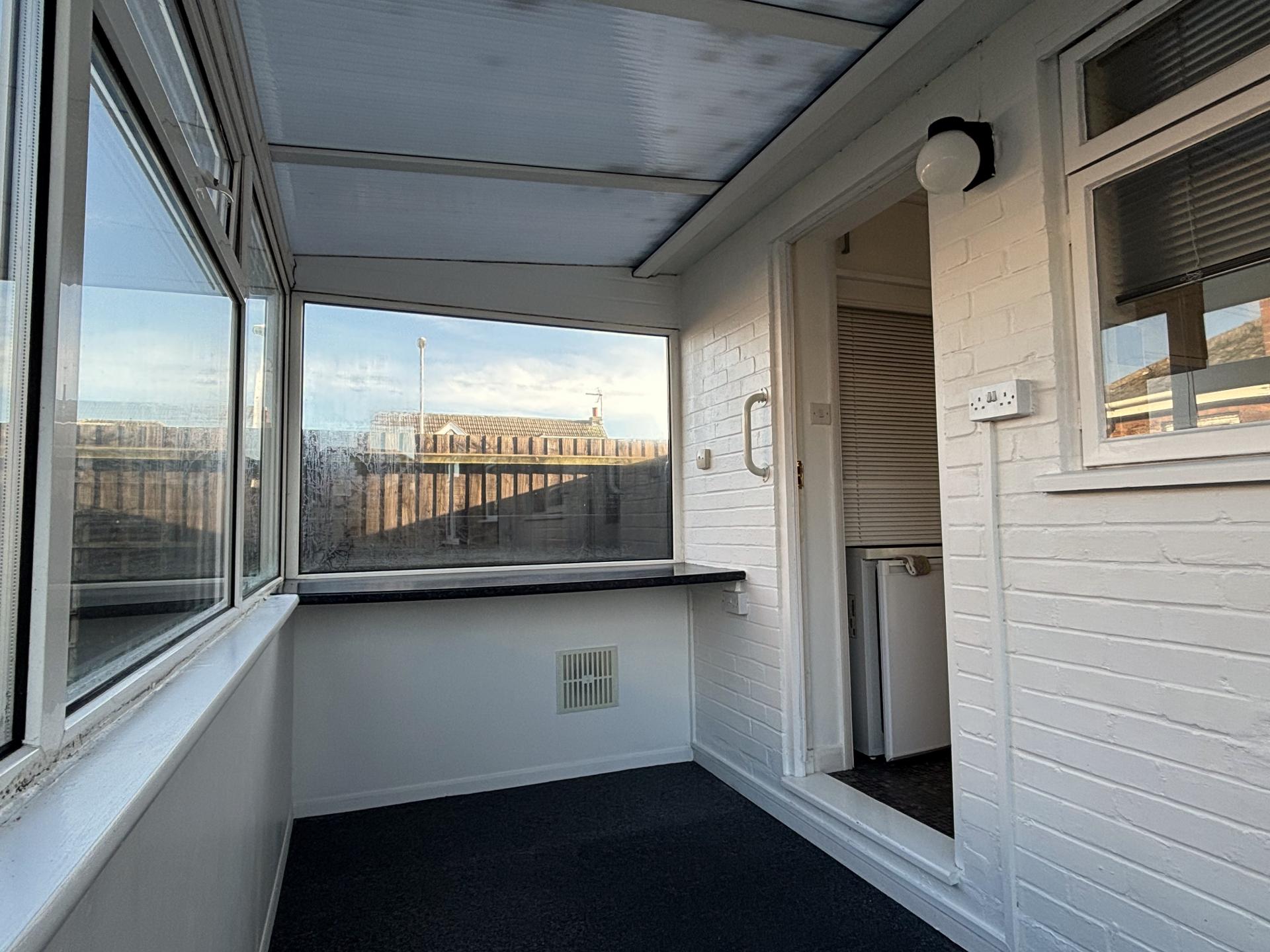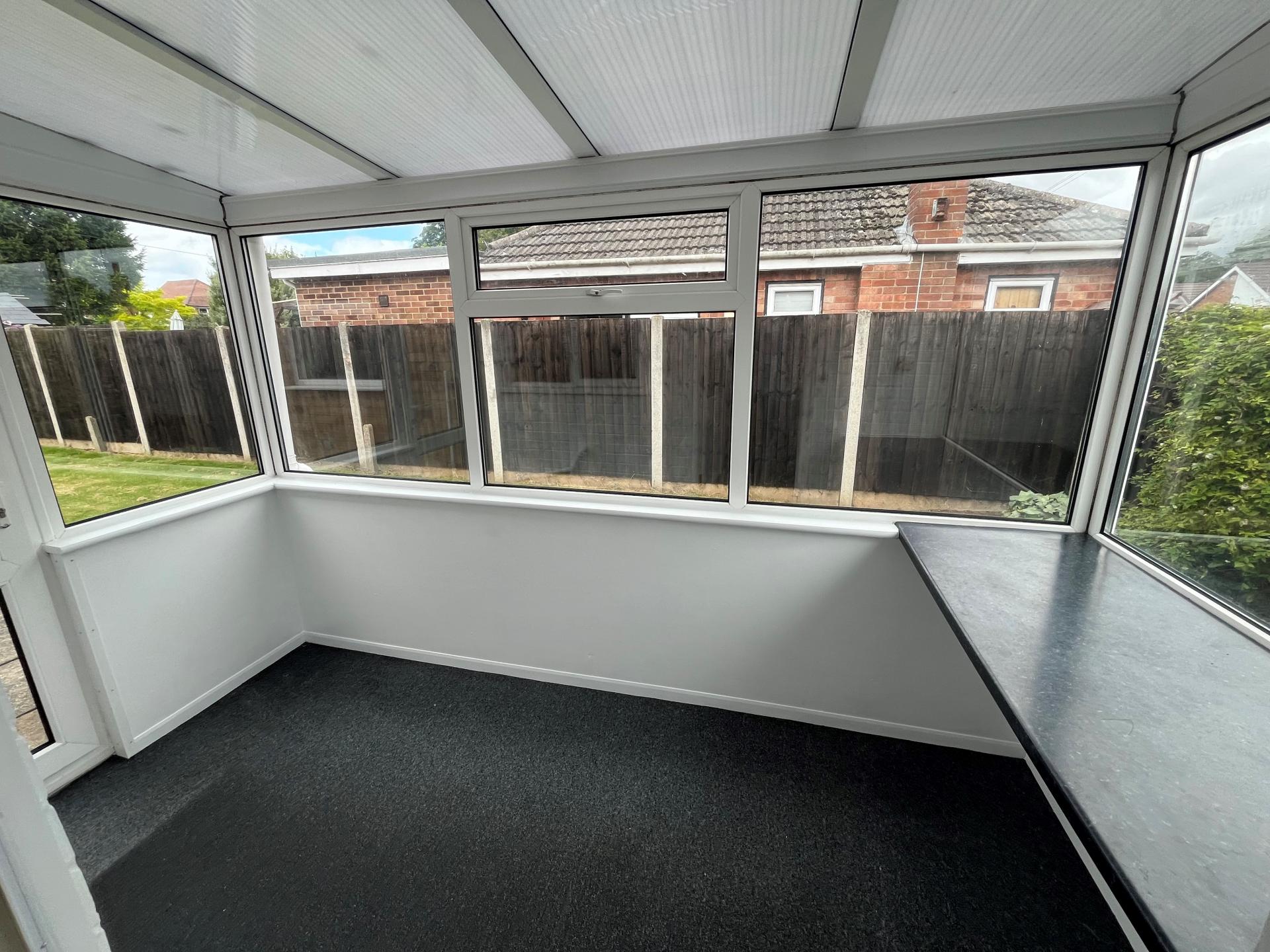 LEANTO / CONSERVATORY 11' 3" x 5' 7" (3.45m x 1.72m) Fitted worktop, power points, wall light, mono-pitch perspex type roof, glazed UPVC external entrance door.