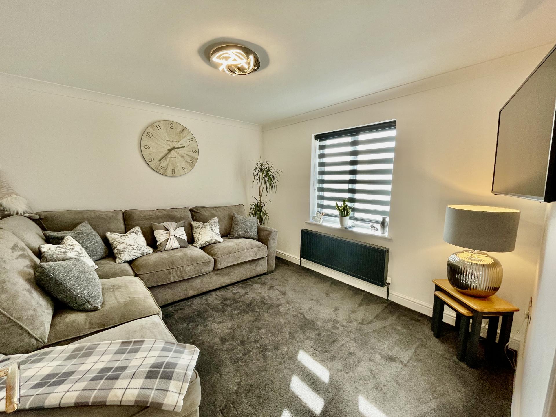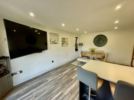 LOUNGE AREA Georgian UPVC double glazed window to the side elevation, skimmed and coved ceiling, inset downlighters, fitted oak style laminate flooring, radiator.