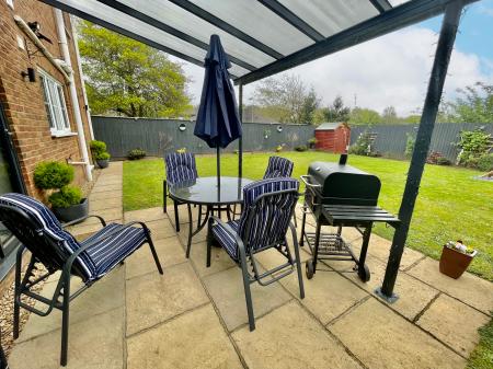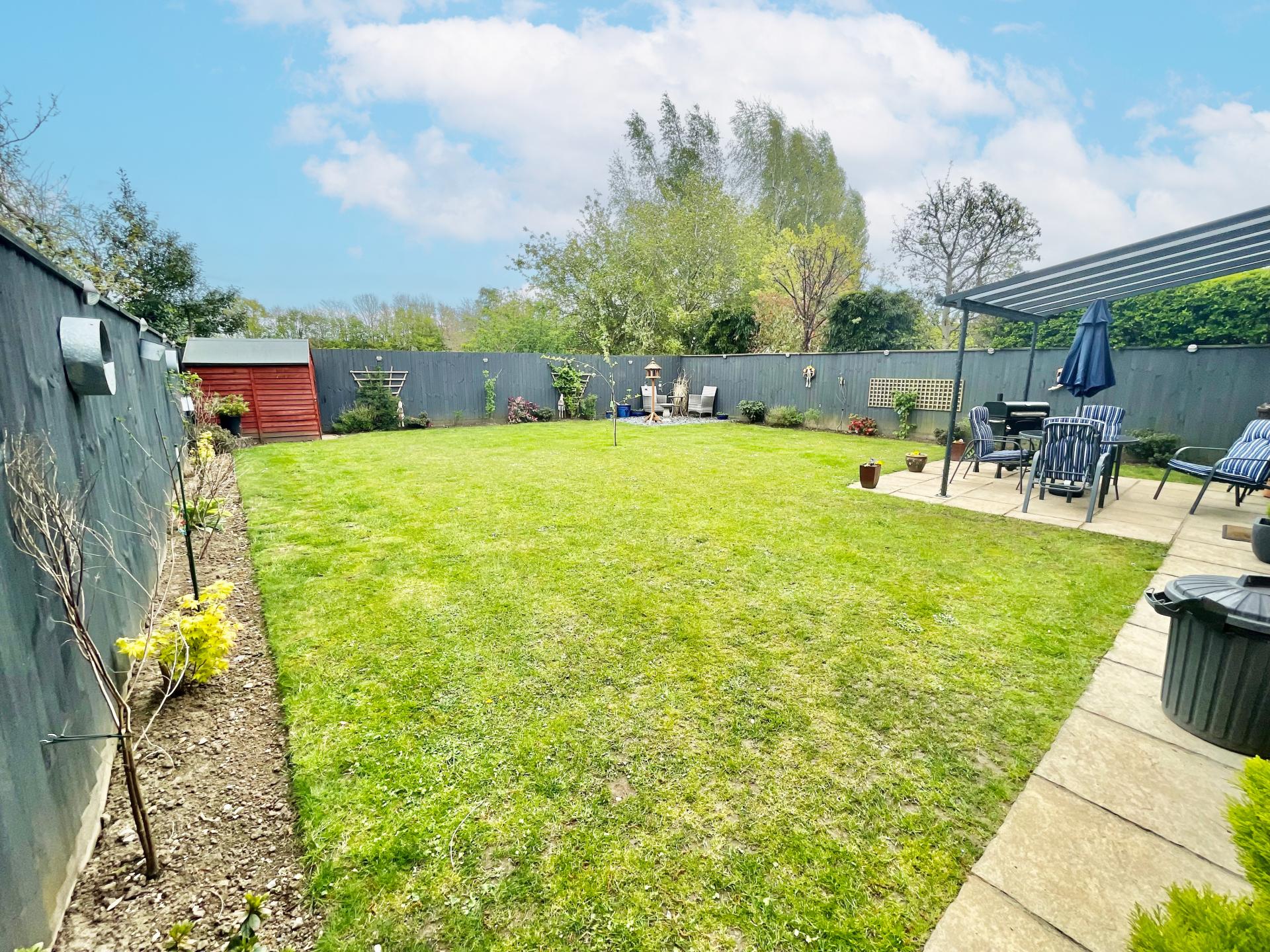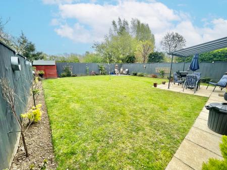 REAR GARDEN Paved pathways, extensive lighting, flagstone patio area with canopy over, the garden is mainly laid to lawn with a wide range of mature shrub and tree borders, lighting, garden shed, fenced boundaries to both sides and to the rear elevations.