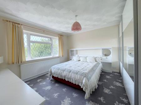 BEDROOM 3 12' 3" x 12' 4" (3.75m x 3.78m) With leaded UPVC double glazed window to the rear elevation, textured and coved ceiling with centre light point, single radiator, fitted double mirrored wardrobe with shelving and hanging rail, built in 3 x drawer chests, built in dressing table with shelving and headboard with overbed lighting.