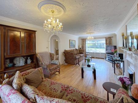 LOUNGE 12' 1" x 26' 10" (3.70m x 8.20m) With leaded UPVC double bay window to the front and rear elevations, textured and coved ceiling with decorative coving, 2 x centre ceiling rose, 2 x centre light points, 2 x double radiators with radiator covers, TV point, telephone point, oak flooring. Feature wooden fire surround with marble insert and marble hearth with fitted coal effect gas fire. Door off leading to: