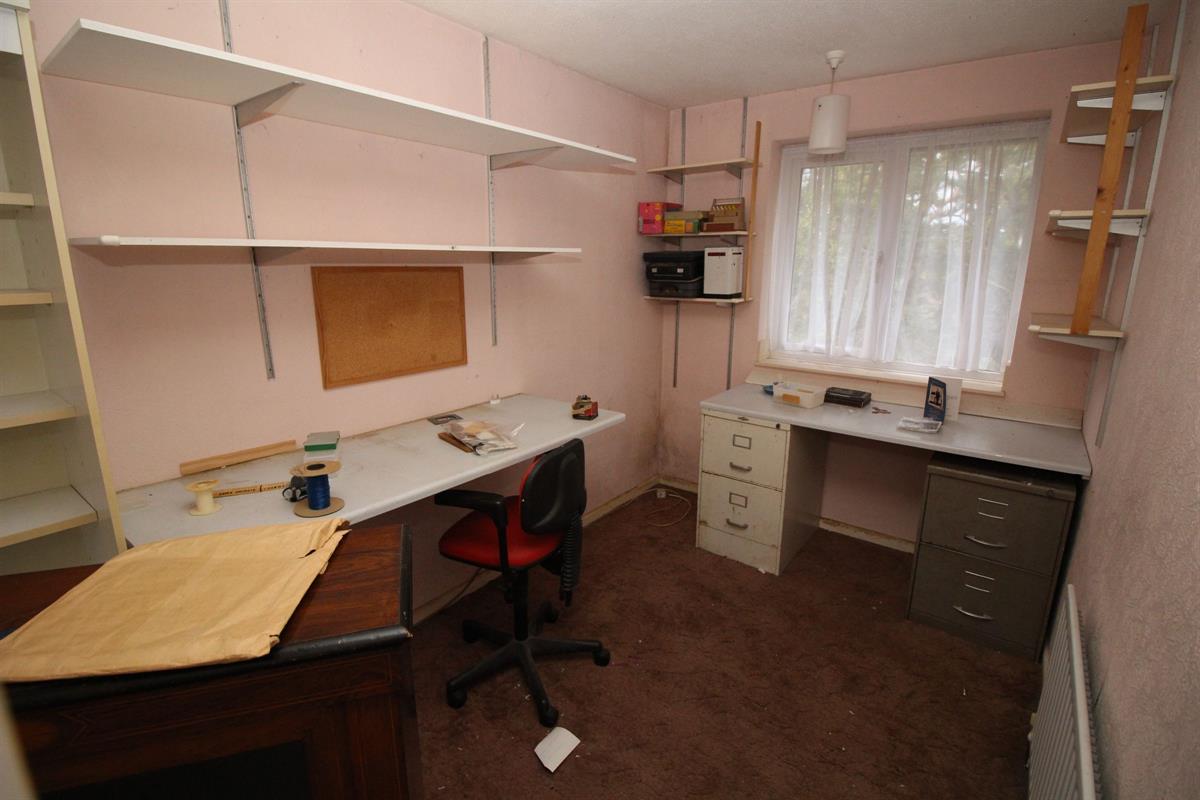 To the front the is a concrete driveway providing parking leading to garage with up and over door, lawn area with side access to rear garden, currently over grown with woodland/open aspect to rear