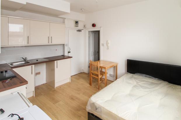 This studio is within a large mansion building and offers an open plan kitchen and living space and a luxury bathroom room suite. The studio is neutrally decorated and offers wood laminate floors and lots of light.