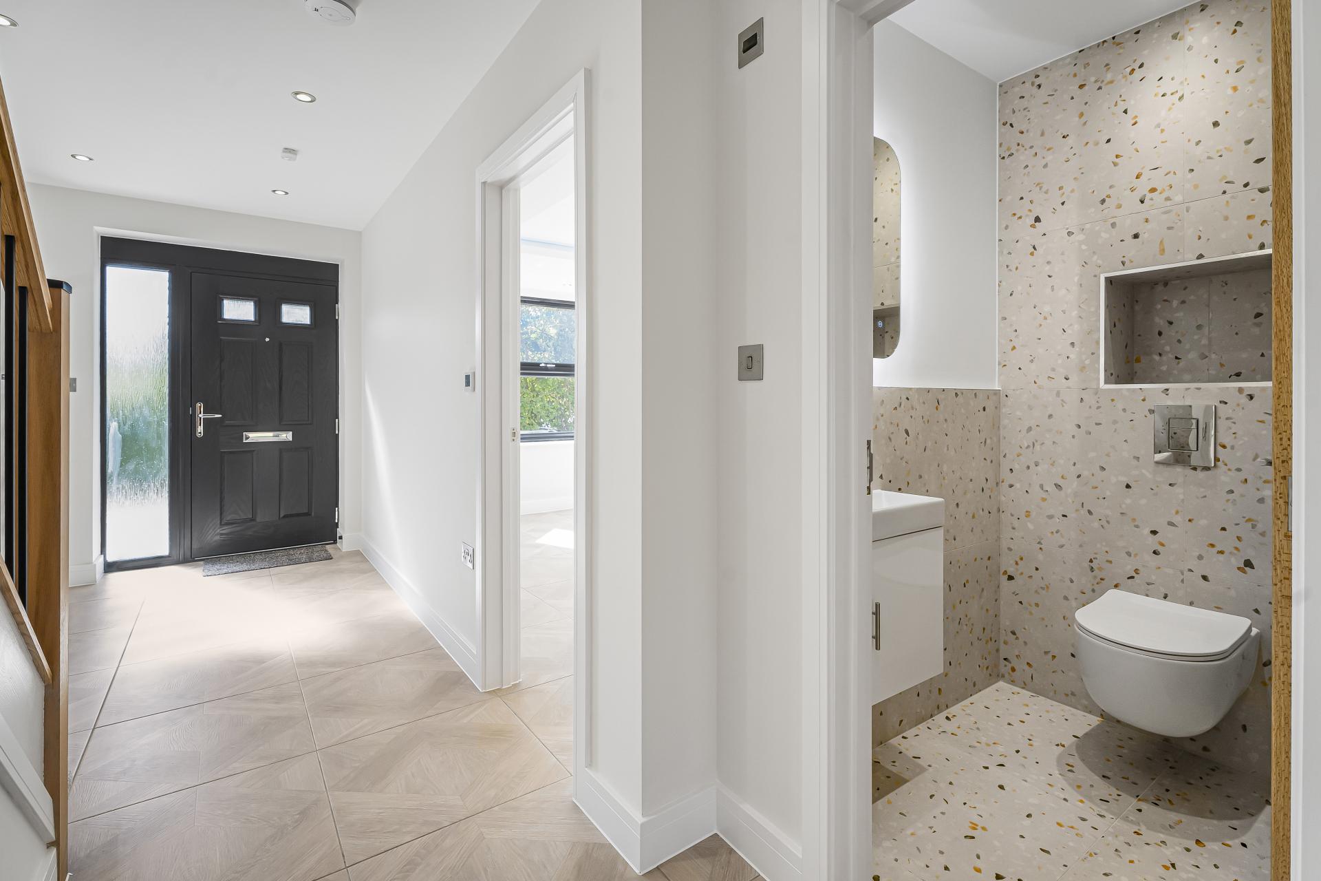 This New Build, semi-detached house has been thoughtfully designed and built to a high specification with modern family living in mind. To the side of the property is a block paved driveway that's complemented by planted borders. There is an initial storm porch and on entering, there is a welcoming entrance hallway with guest cloakroom. The hub of this home is the expansive open plan kitchen/dining/family area, which has bi-folds opening onto the garden and is ideal for entertaining and family gatherings. The kitchen is fitted with British made, shaker style wall and base units that's complimented by the quartz worktops/splash backs, Bosch appliances, Quooker boiling water tap with filtered cold water and a utility room with plumbing for the Bosch washing machine and tumble dryer. There is a separate living room that is front aspect facing with mood lighting. The ground floor is completed with porcelain tiles and underfloor heating, which is serviced by the gas boiler. To the first floor you will find three double bedrooms and a family bathroom with the principal bedroom enjoying the benefit of an impressive ensuite shower room. Gas central heating services the radiators throughout this floor. Upstairs is finished with soft carpeting, while the bathrooms feature elegant porcelain tiling and stylish fittings. To the rear, is a low maintenance, private garden, which is mainly laid to lawn with porcelain slab patio and gated side access. Other benefits include Solar PV Panels, water softener, LED lighting, alarm system, CAT 6 in all rooms and a 10 year build warranty.