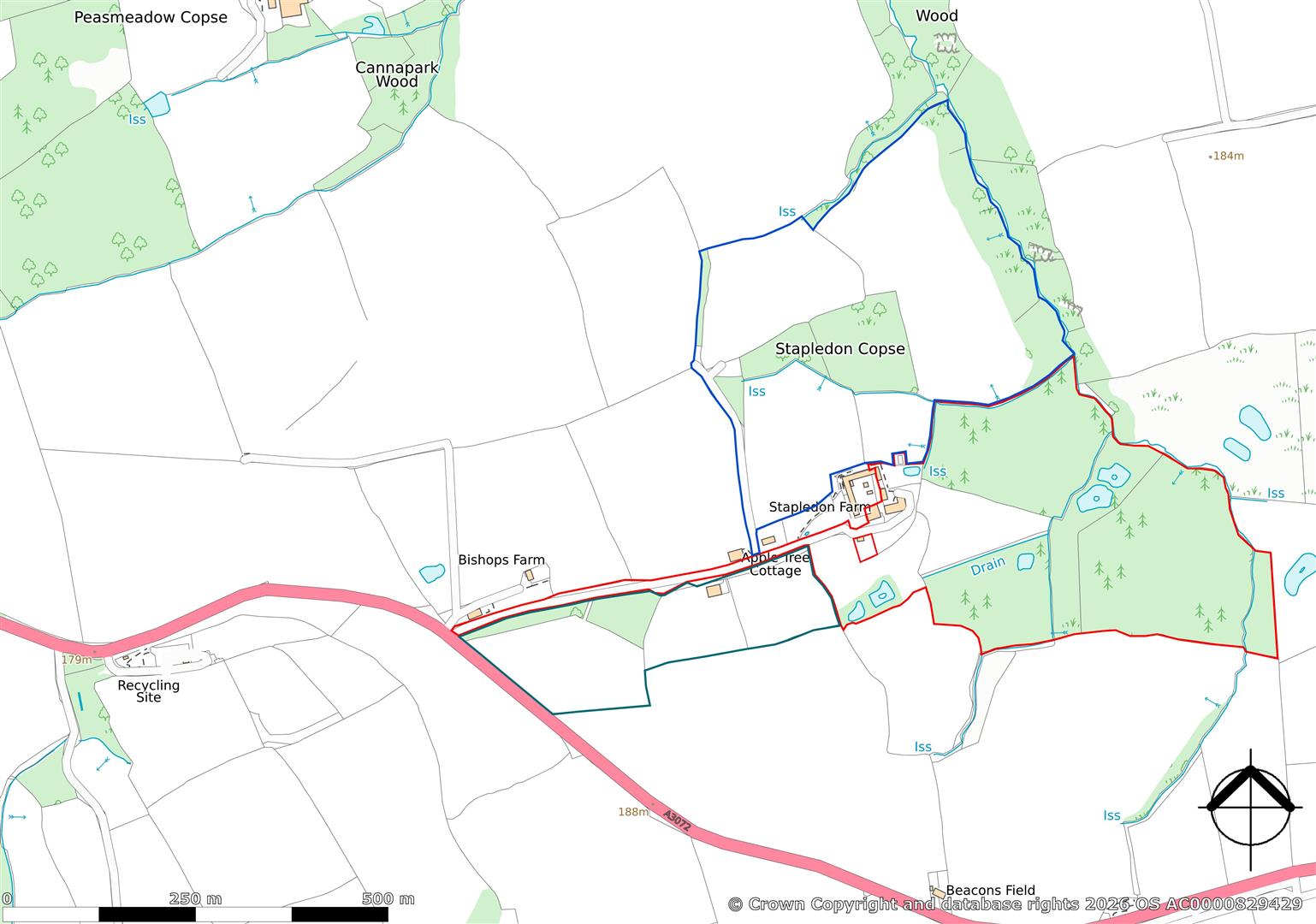 Stapledon House & Cottages are situated at the end of a long shared tamacadam, tree lined drive with farm land on either side. A gated entrance opens on to a private drive passing through the lawned gardens to the rear of the house and cottages.
