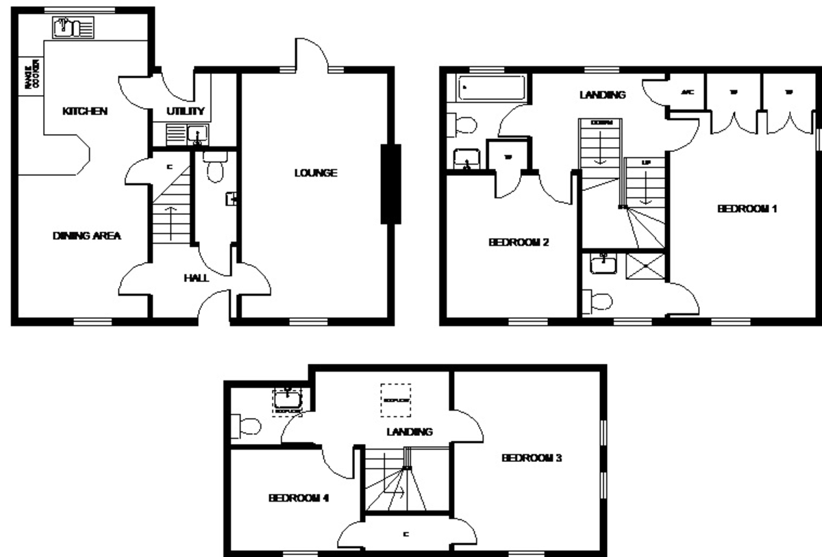 Utility Room 6' 6" x 5' 2" (1.98m x 1.57m) With ceramic tiled floor, floor and wall cupboards matching those in the kitchen, inset stainless steel sink with mixer tap, plumbing for automatic washing machine, Worcester wall mounted gas boiler for central heating and hot water, door to rear garden.