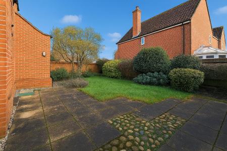 Outside In front of the house is a small open plan front garden with inset shrubs. The rear garden, which has a southerly aspect is mainly enclosed by brick walls for privacy. Immediately behind the house is a paved patio over looking the lawn and well stocked shrub borders providing all year round colour.