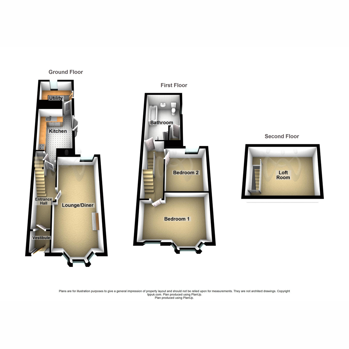 Venturing up to the upper levels, you’ll find two cosy Bedrooms that promise restful nights and a Family Bathroom that adds convenience to your daily routine. And don’t miss the fabulous spacious Loft Room, an ideal retreat that can serve as a home office, playroom, or whatever your heart desires!