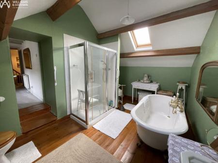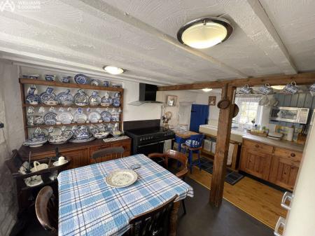 Greeted into the property via the entrance vestibule built sympathetically in keeping with the character of the property which then opens into the sitting room with its stunning feature inglenook fireplace with stone and timber supporting mantel over. This is the true ‘heart’ of the home as it provides access to the majority of the rooms including sitting room, conservatory, kitchen and in turn dairy/utility room. A staircase leads to the first floor landing with excellent storage and then to two double bedrooms and vaulted bathroom with an additional staircase leading to the master bedroom with en suite facilities. The combination of undulating walls, exposed beams and fireplaces are filled with character and history.