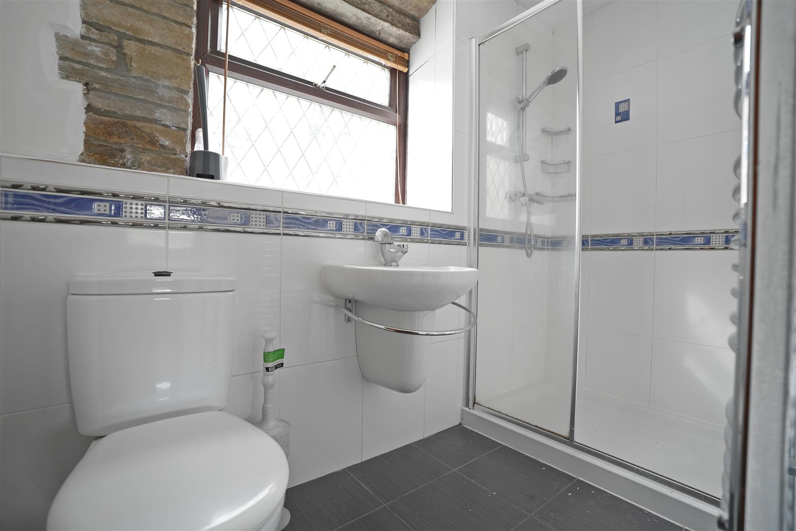 Shower Room - Wash hand basin. Low flush W.C. Shower cubicle. Chrome towel radiator. Wooden double glazed window to rear elevation.