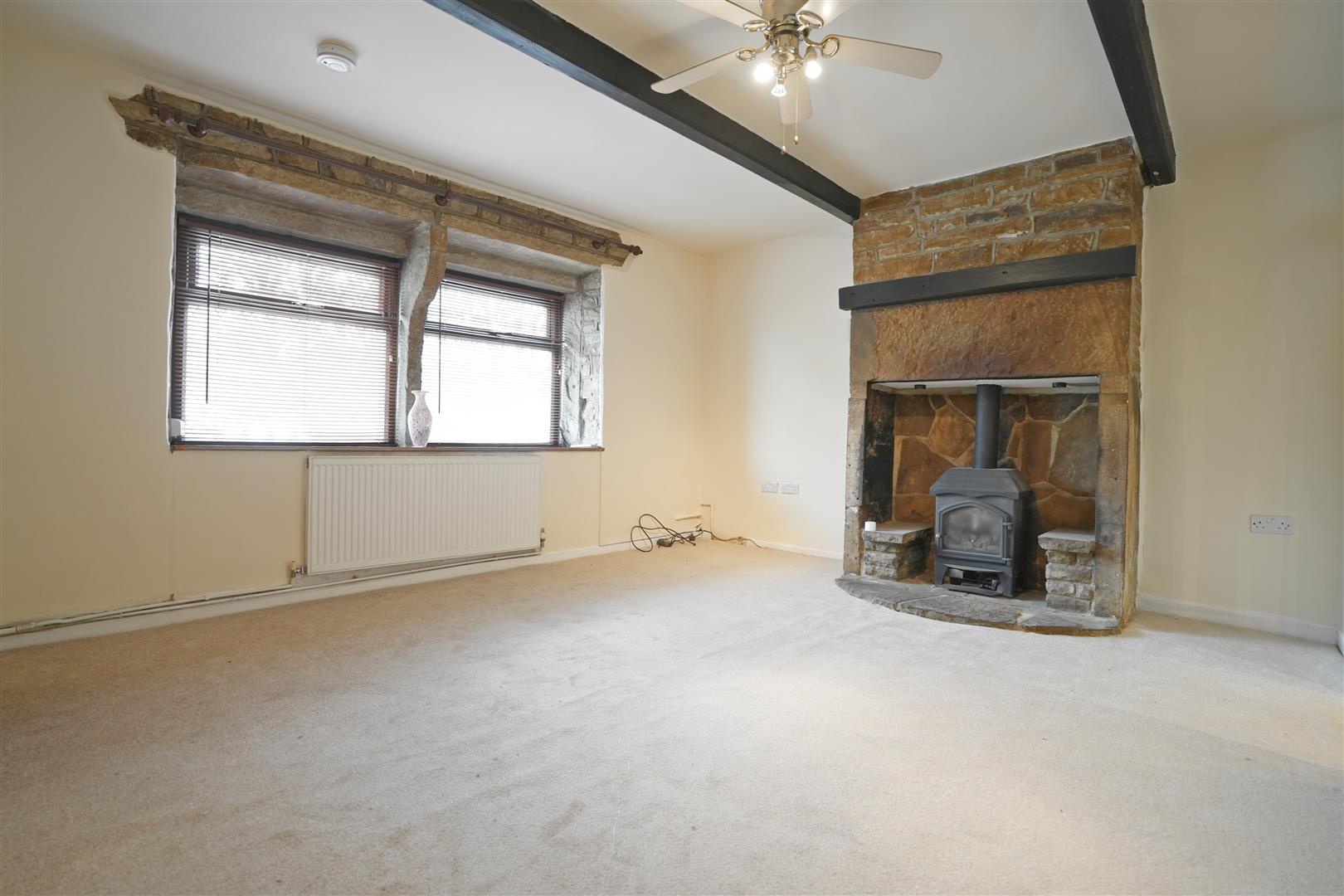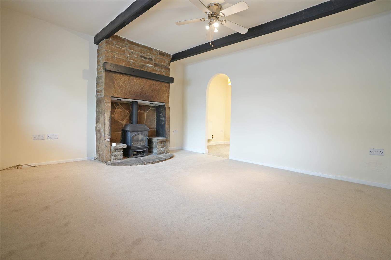 Lounge - 4.189 x 3.877 (13'8" x 12'8") - Gas stove set in an Inglenook fireplace. Ceiling beams. Radiator. Wooden double glazed window to front elevation.