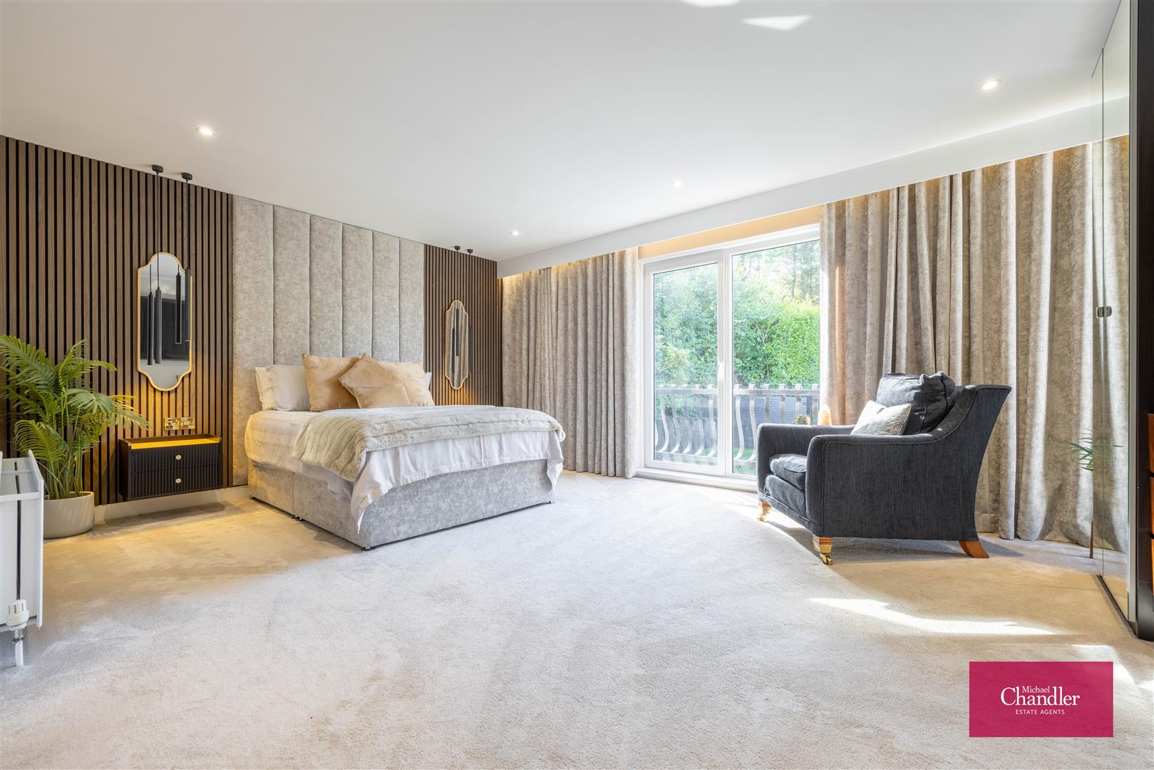 Very spacious master bedroom upstairs with walk in wardrobe and lovely garden views