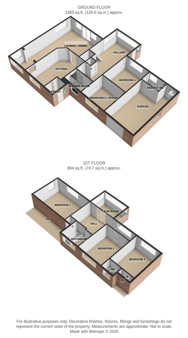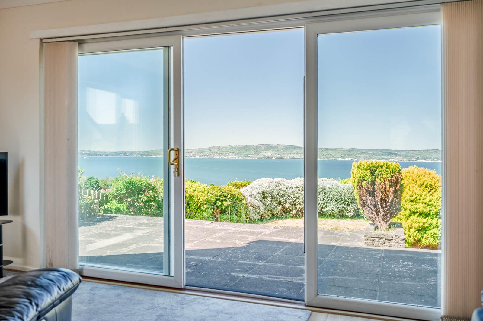 The property is thoughtfully designed with versatility in mind, featuring two ground floor bedrooms and a modern shower room, ideal for guests, extended family, or single-level living. Upstairs, three additional bedrooms are complemented by a glazed first-floor viewing gallery, a striking feature that invites you to unwind while enjoying the expansive coastal and countryside vistas.