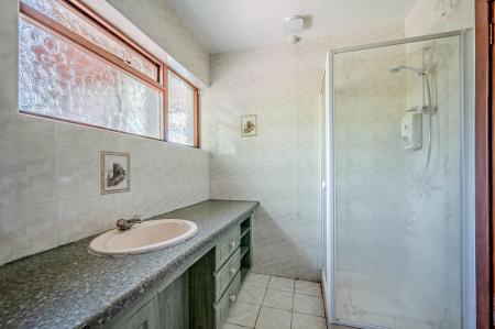 Shower Room: - (2.49m x 2.11m) - Beige suite comprising of low flush WC, wall hung wash hand basin, chrome mixer tap, walk-in electric Energy 2000 electric shower, telephone handle attachment, Xpelair extractor fan, tiled walls, tiled floor.
