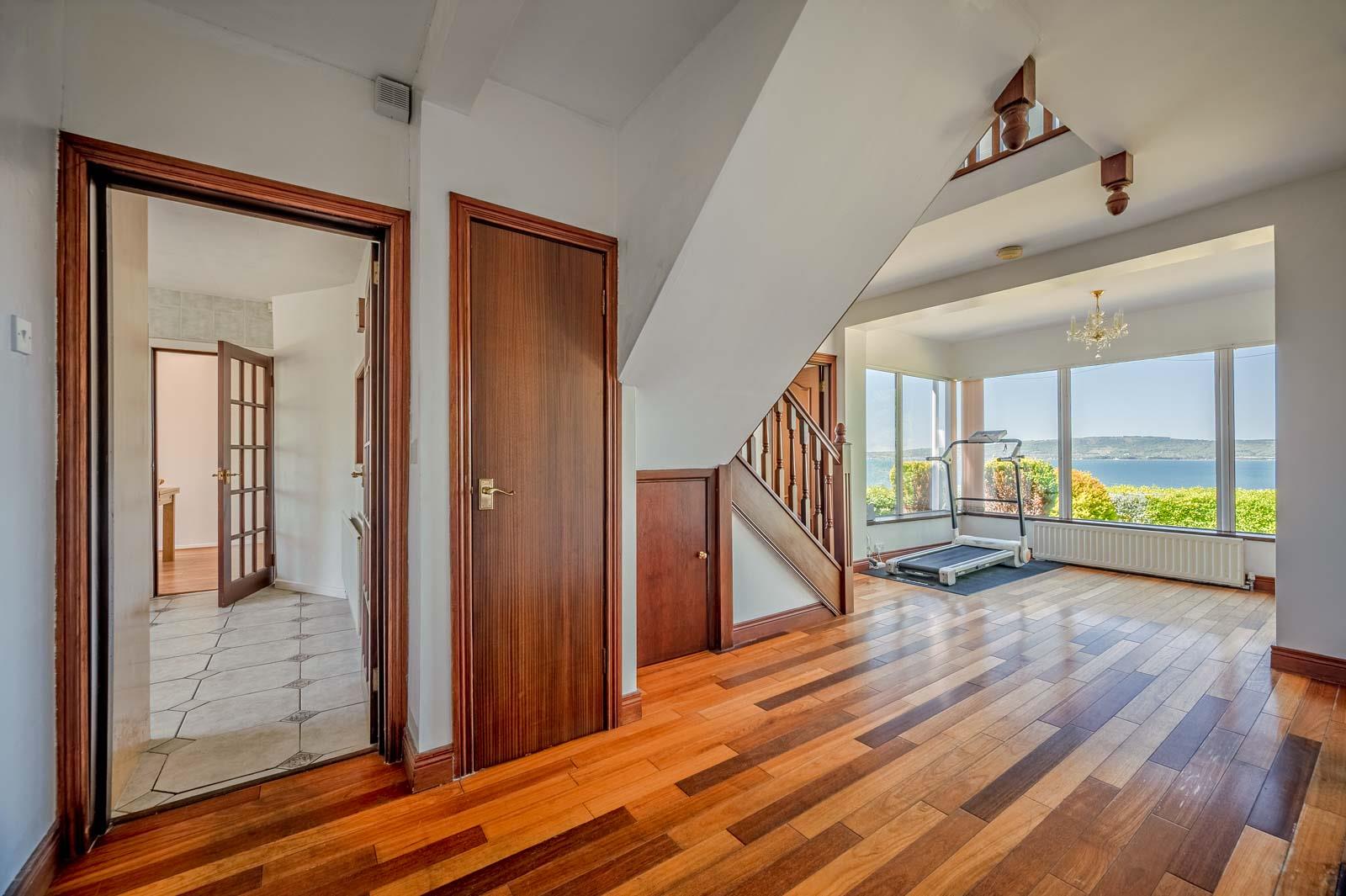 Set on a generous and beautifully landscaped corner plot in the highly sought-after Seahill area, 14 Rathmoyle Park is a superb five-bedroom detached residence offering panoramic views across Belfast Lough and the Antrim Hills. This well-appointed family home enjoys a prime position within a quiet cul-de-sac, ideal for those seeking space, privacy, and breathtaking scenery.